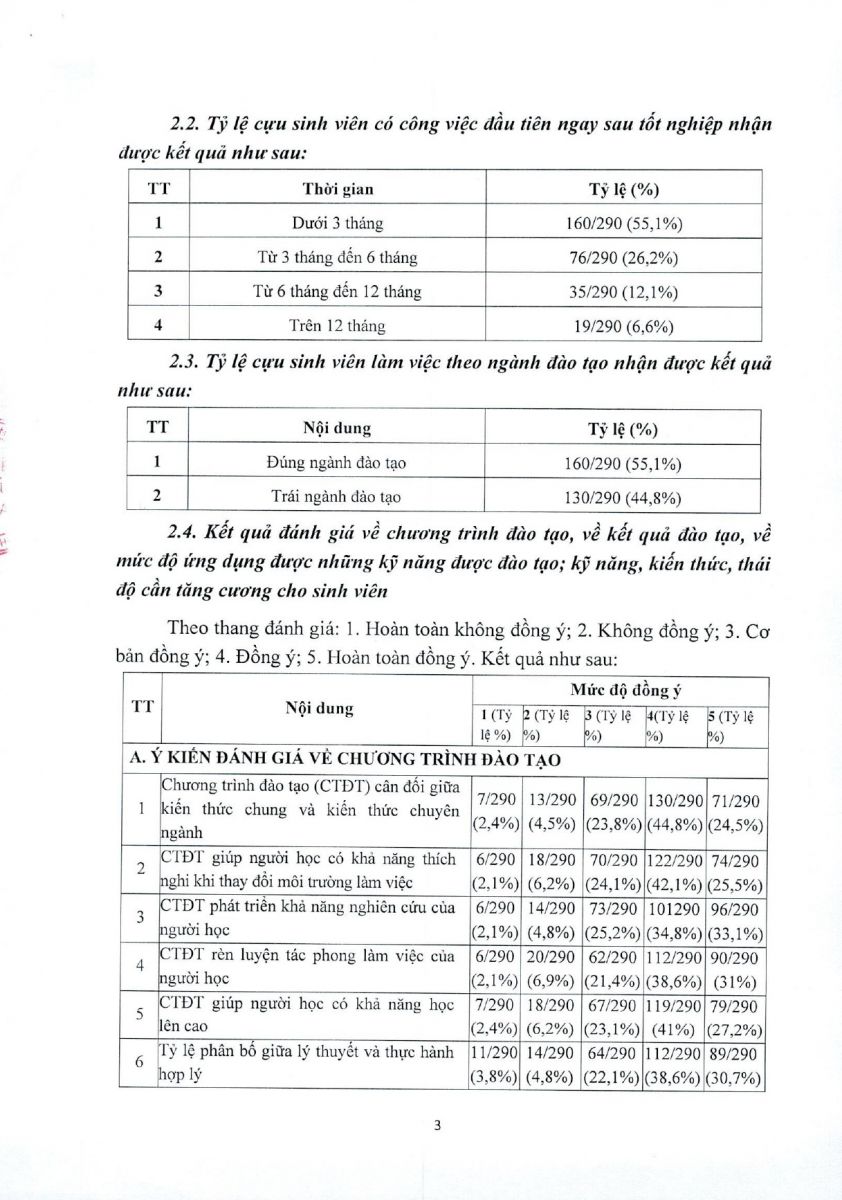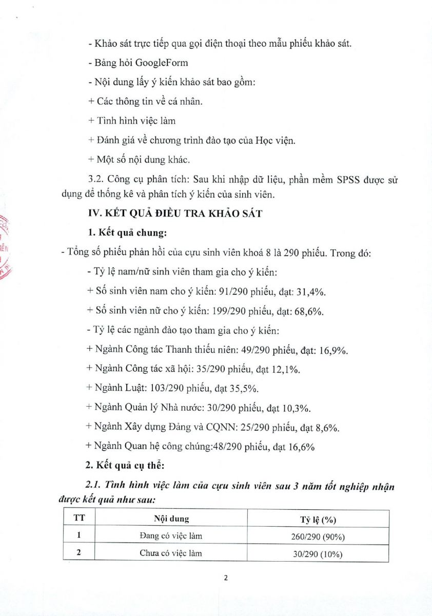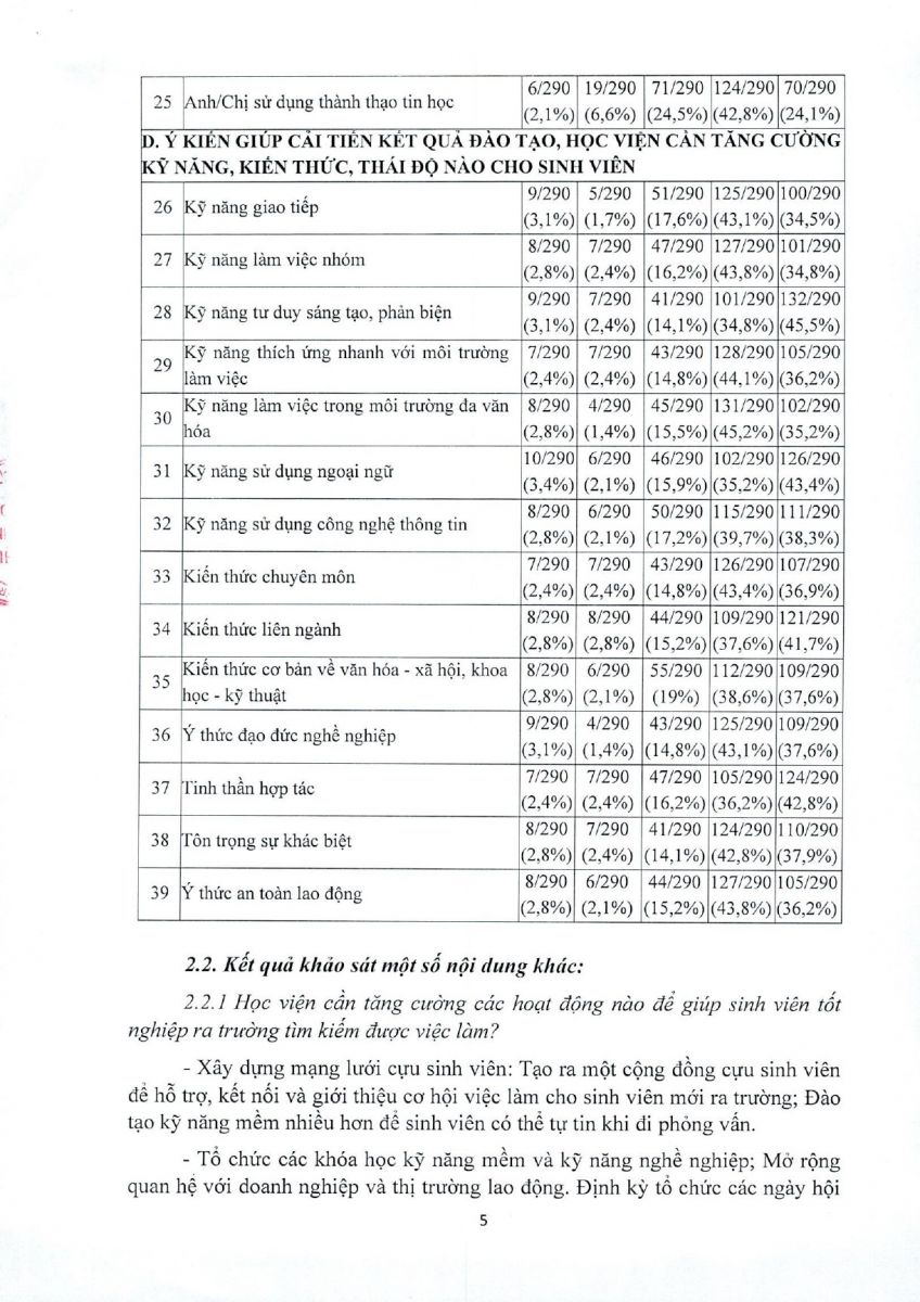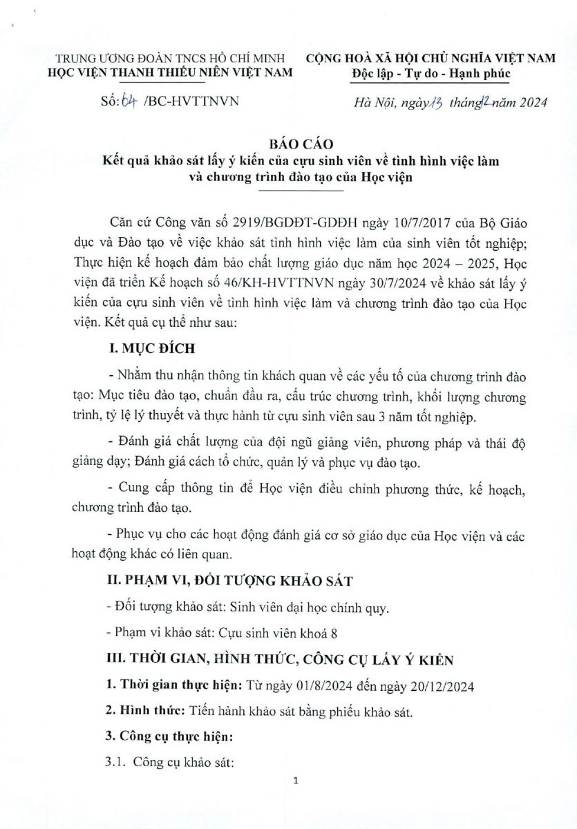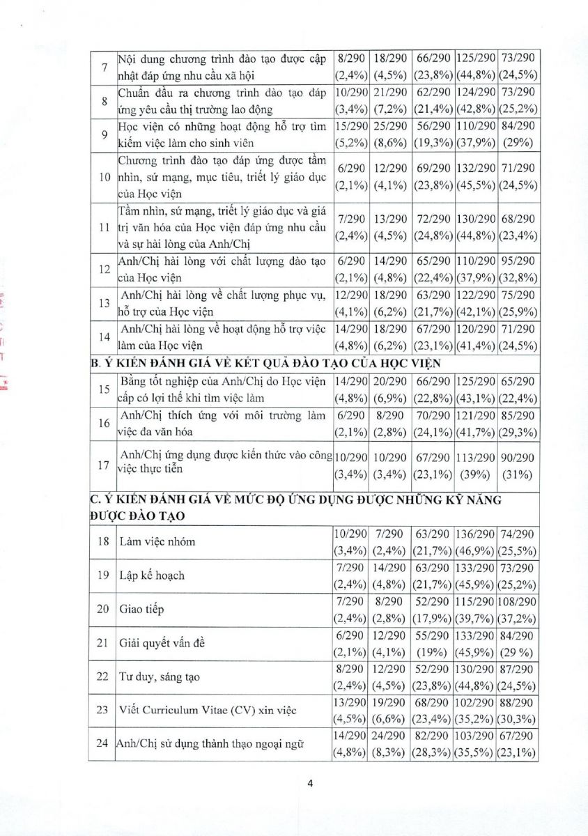Báo cáo kết quả khảo sát lấy ý kiến của cựu sinh viên về tình hình việc làm và chương trình đào tạo của Học viện năm 2024