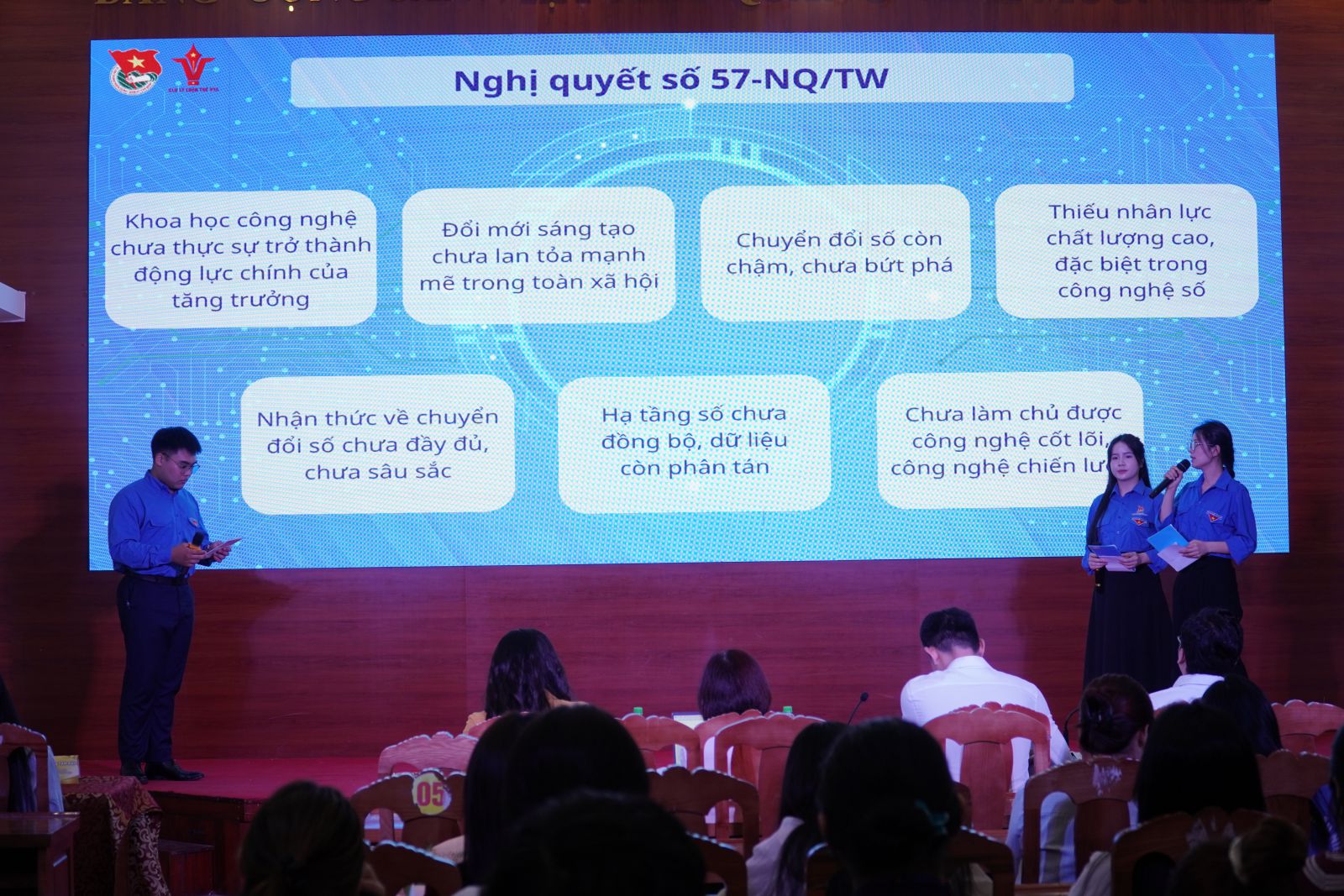Điểm nhấn của đêm Chung kết là phần thi Thuyết trình, nơi các đội thể hiện tư duy phân tích và khả năng vận dụng lý luận vào thực tiễn. Từ video đề bài được đưa ra, các đội đã trình bày quan điểm xoay quanh vai trò của thanh niên gắn với tinh thần Nghị quyết Đại hội đại biểu toàn quốc lần thứ XIV của Đảng, qua đó làm nổi bật trách nhiệm, sứ mệnh của thế hệ trẻ trong bối cảnh phát triển mới của đất nước.