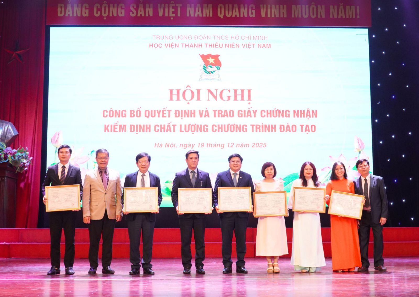 Ngày 19/12/2025, Học viện Thanh thiếu niên Việt Nam tổ chức Lễ Công bố quyết định và trao chứng nhận kiểm định chất lượng 7 chương trình đào tạo hệ đại học. Đây là một bước chuyển mình quan trọng, tạo động lực để Học viện tiếp tục nâng cao chất lượng đào tạo, bồi dưỡng cán bộ và hoạt động nghiên cứu khoa học trong thời gian tới.