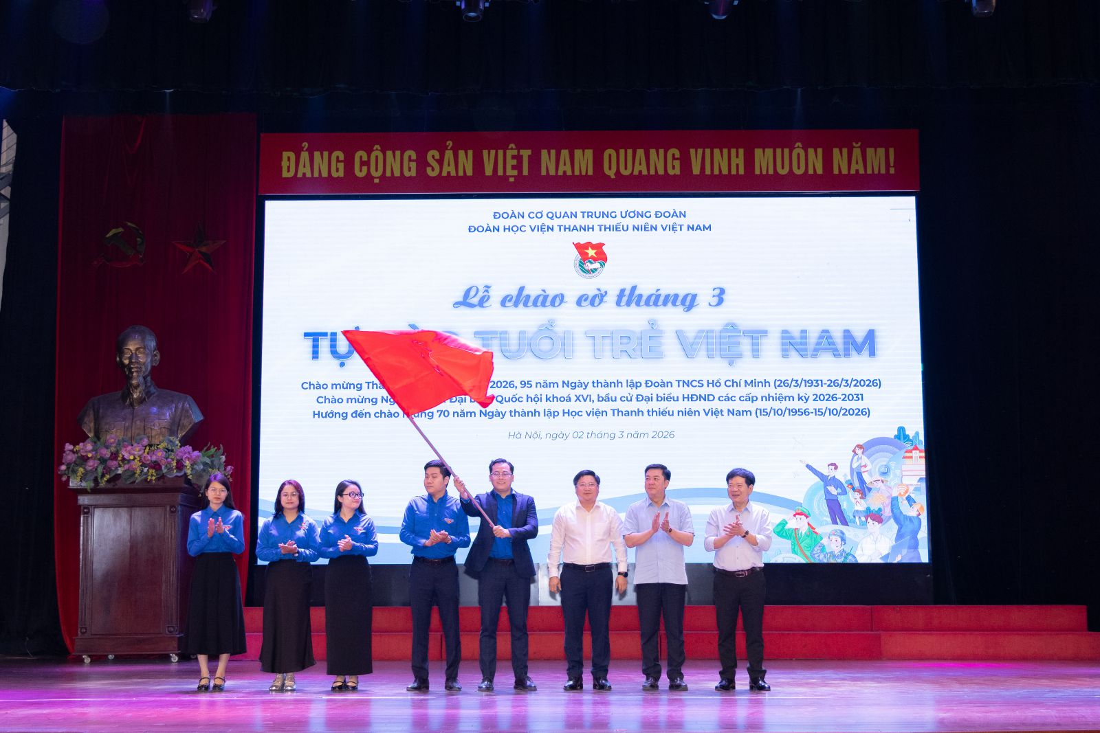 Sáng ngày 02/3/2026, tại Hội trường lớn Học viện Thanh thiếu niên Việt Nam, Ban Thường vụ Đoàn Học viện đã tổ chức Lễ chào cờ tháng 3 và phát động Tháng Thanh niên năm 2026 với chủ đề “Tự hào Tuổi trẻ Việt Nam”.