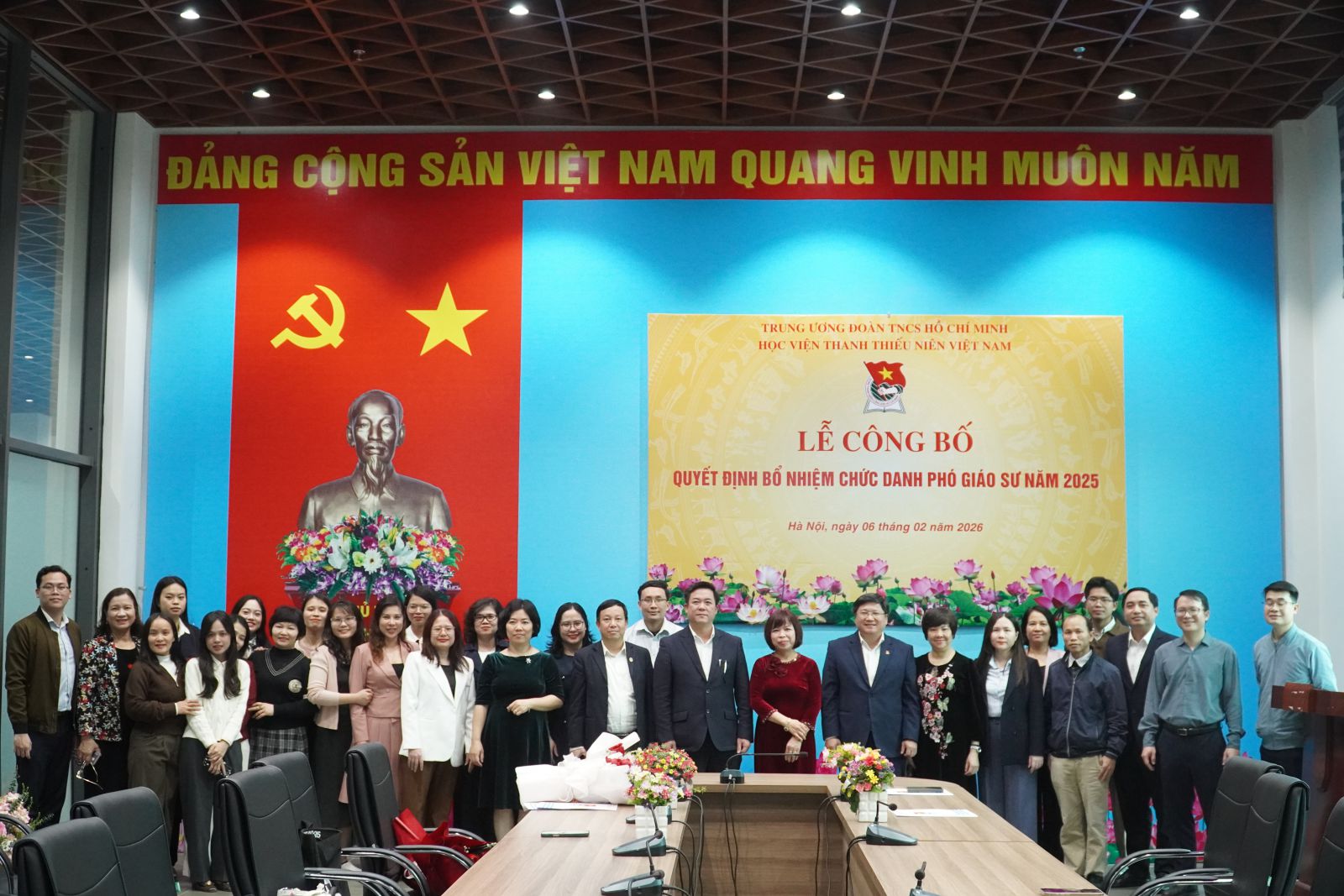 Ban lãnh đạo Học viện cùng tập thể viên chức, người lao động Khoa Chính trị học chụp ảnh lưu niệm nhân dịp đầu năm mới 2026