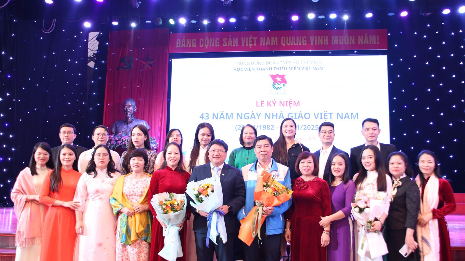 Tập thể viên chức, người lao động Khoa Chính trị học chụp ảnh lưu niệm tại Lễ kỷ niệm 43 năm Ngày Nhà giáo Việt Nam 20/11