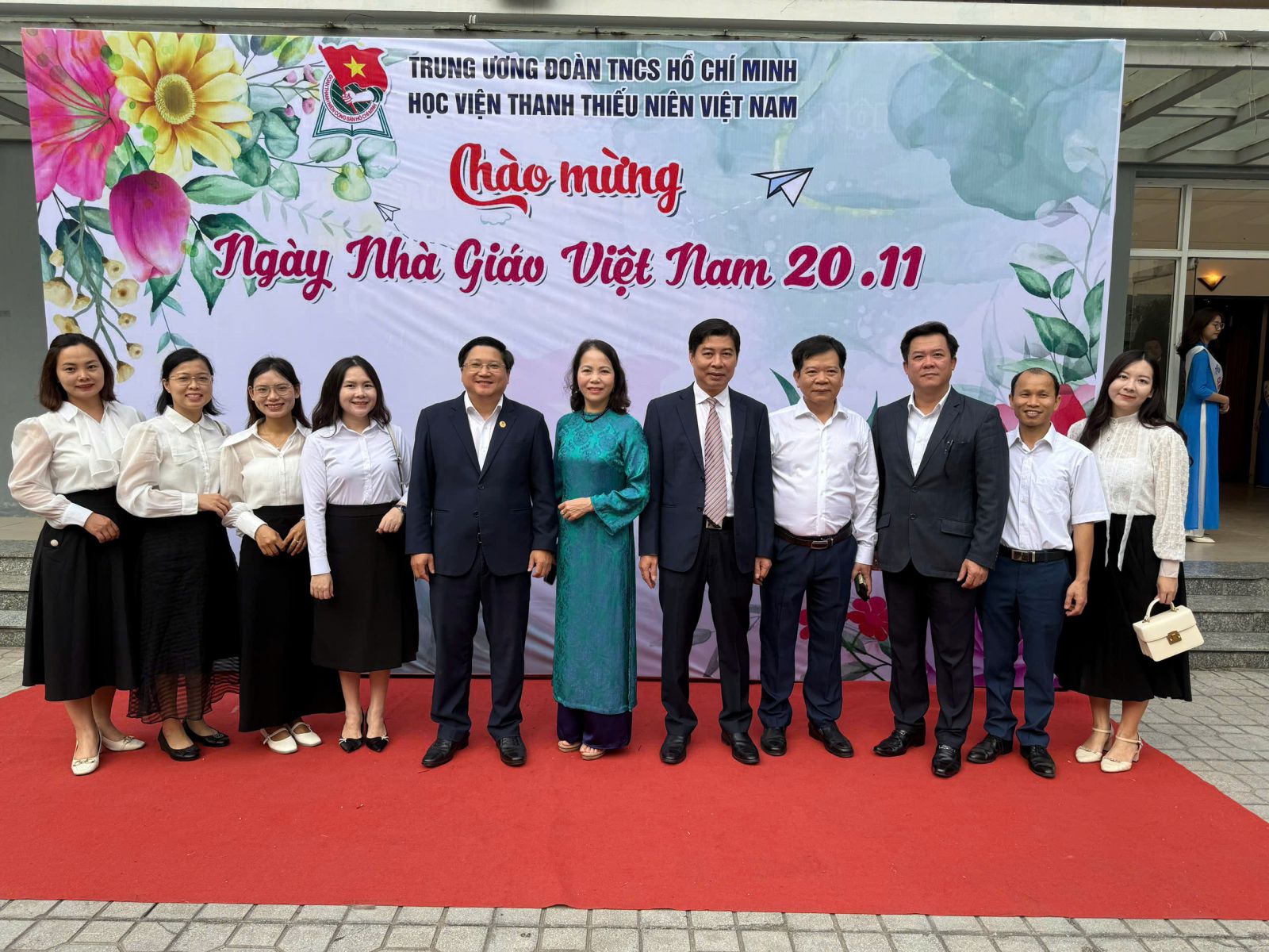Ban lãnh đạo Học viện chụp ảnh lưu niệm cùng cán bộ, giảng viên, viên chức, người lao động Khoa Công nghệ và Ngoại ngữ nhân dịp chào mừng Ngày Nhà giáo Việt Nam 20/11
