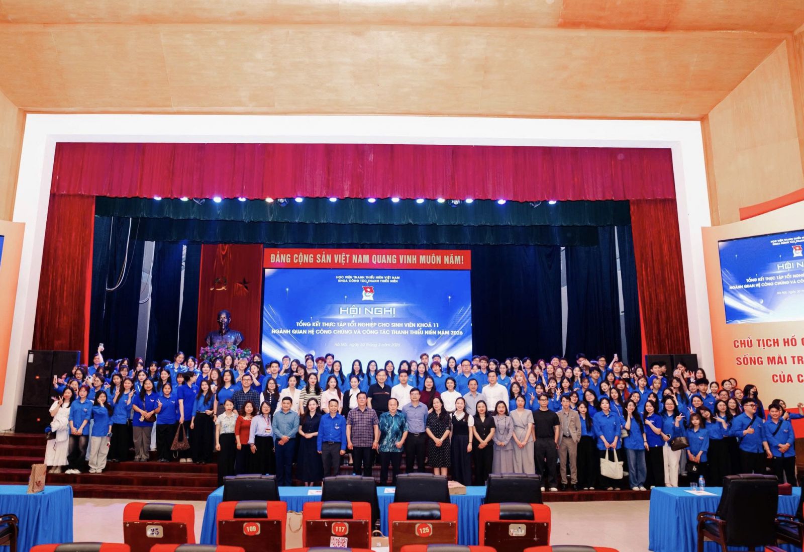 Lãnh đạo Học viện cùng cán bộ, giảng viên, viên chức, người lao động Khoa Công tác TTN chụp ảnh lưu niệm cùng các bạn đoàn viên, sinh viên tại Hội nghị tổng kết thực tập tốt nghiệp cho sinh viên khóa K11