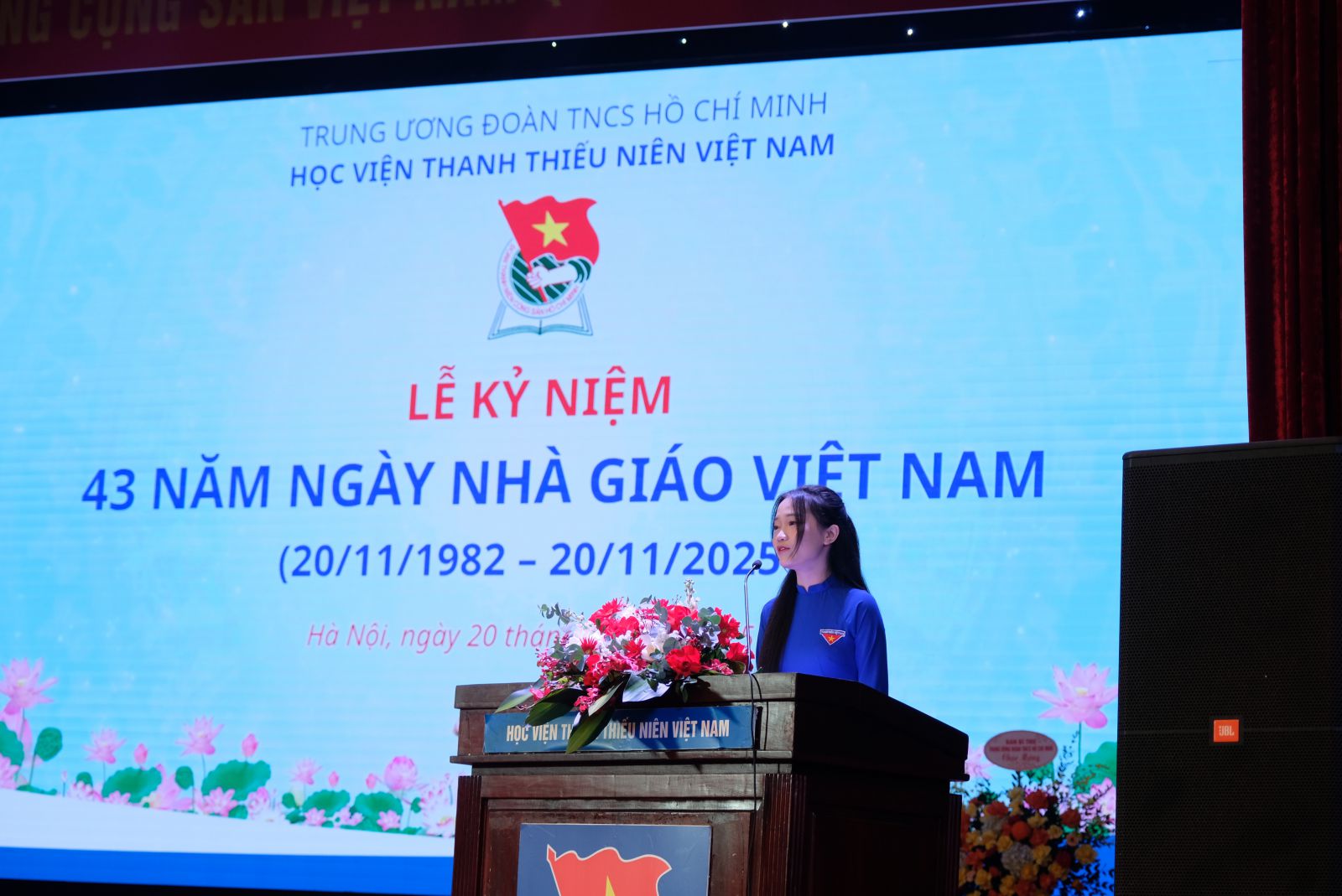Sáng ngày 20/11/2025, tại Hà Nội, Học viện Thanh thiếu niên Việt Nam long trọng tổ chức Lễ kỷ niệm 43 năm ngày Nhà giáo Việt Nam (20/11/1982 – 20/11/2025).