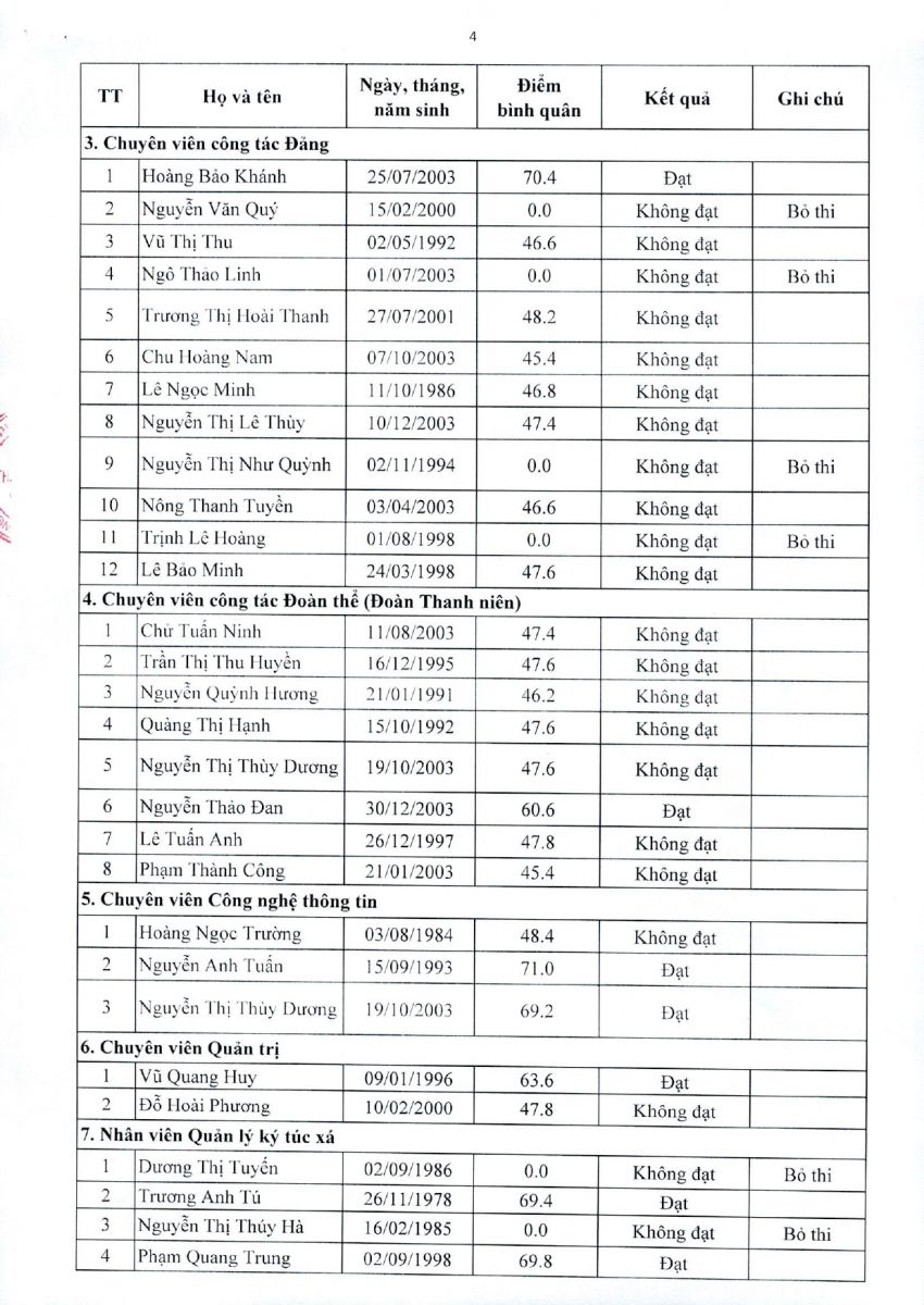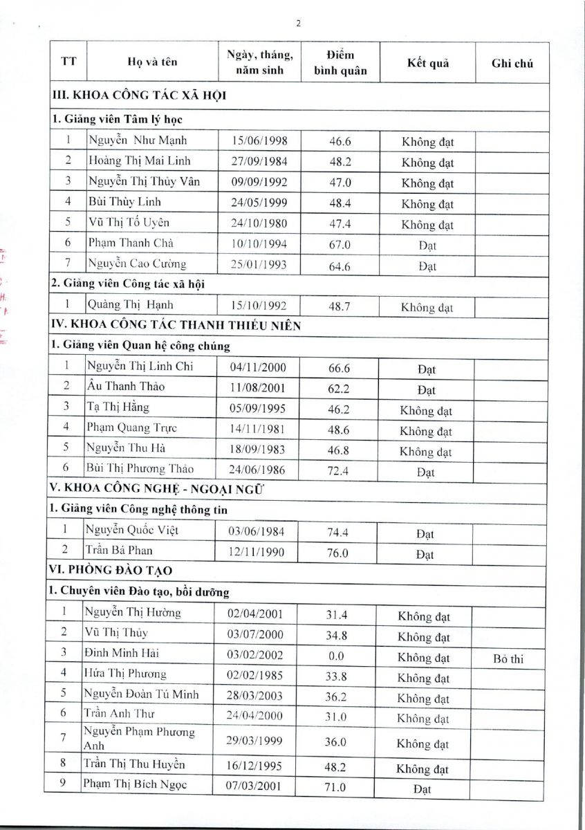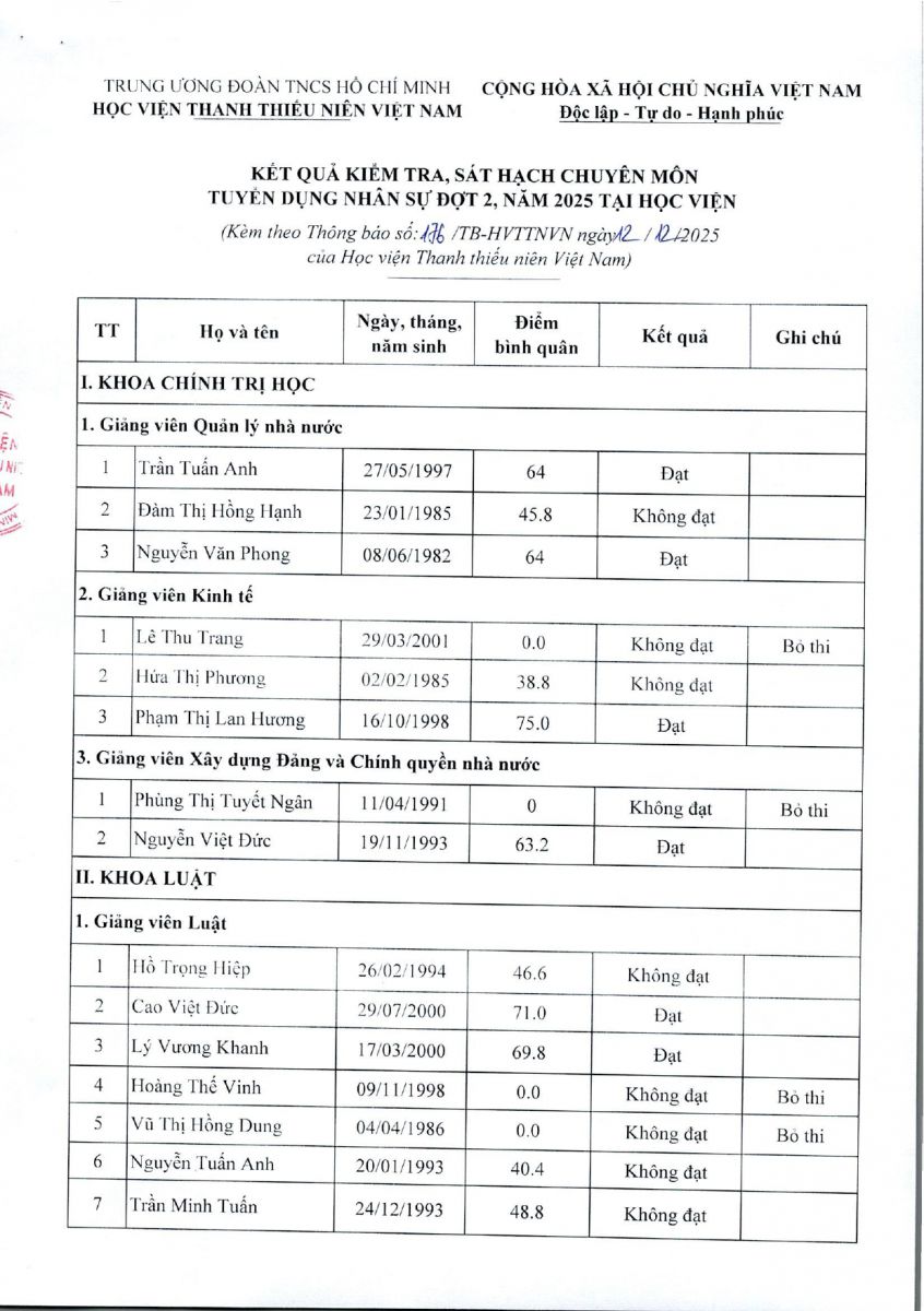 - Thông báo kết quả kiểm tra, sát hạch chuyên môn tuyển dụng giảng viên hợp đồng năm 2025 tại phân hiệu Học viện Thanh thiếu niên Việt Nam