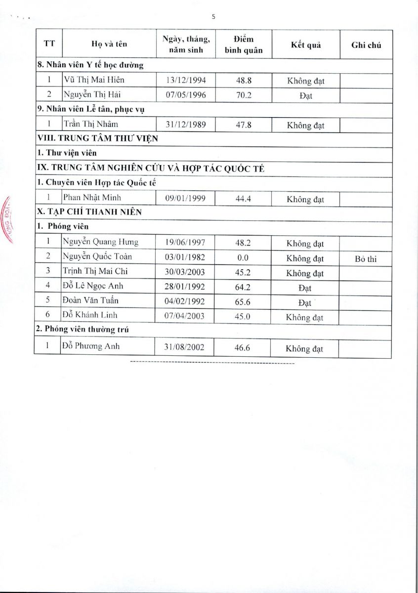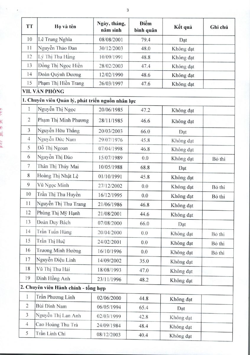 - Thông báo kết quả thẩm định hồ sơ ứng viên tuyển dụng nhân sự đợt 2, năm 2025