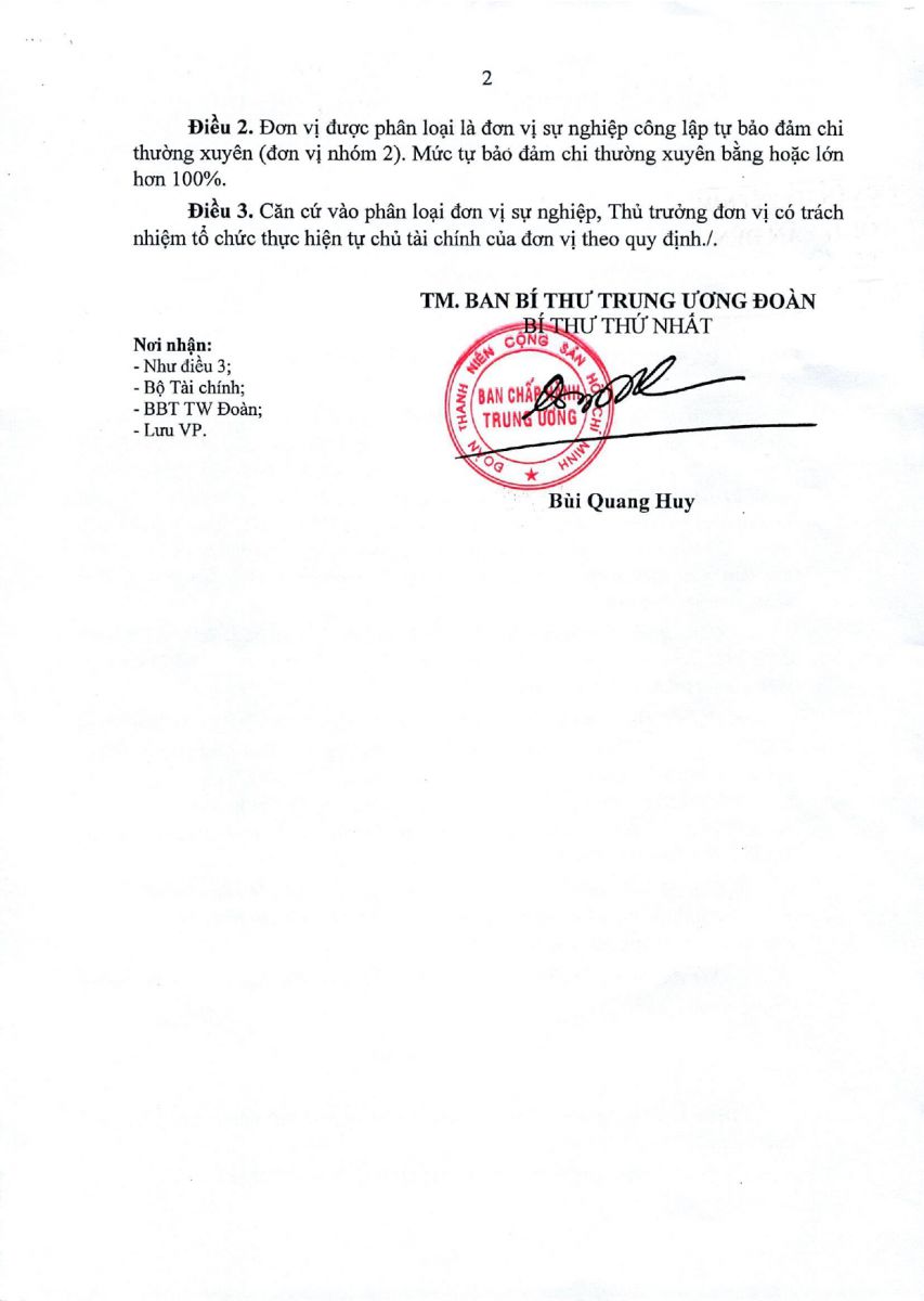 Ngày 27/6/2025, Ban Chấp hành Trung ương Đoàn TNCS Hồ Chí Minh đã ban hành Quyết định số 1054 - QĐ/TWĐTN-VP về việc giao quyền tự chủ tài chính đối với đơn vị sự nghiệp công lập giai đoạn 2026 - 2030 cho Học viện Thanh thiếu niên Việt Nam, nội dung cụ thể như sau: