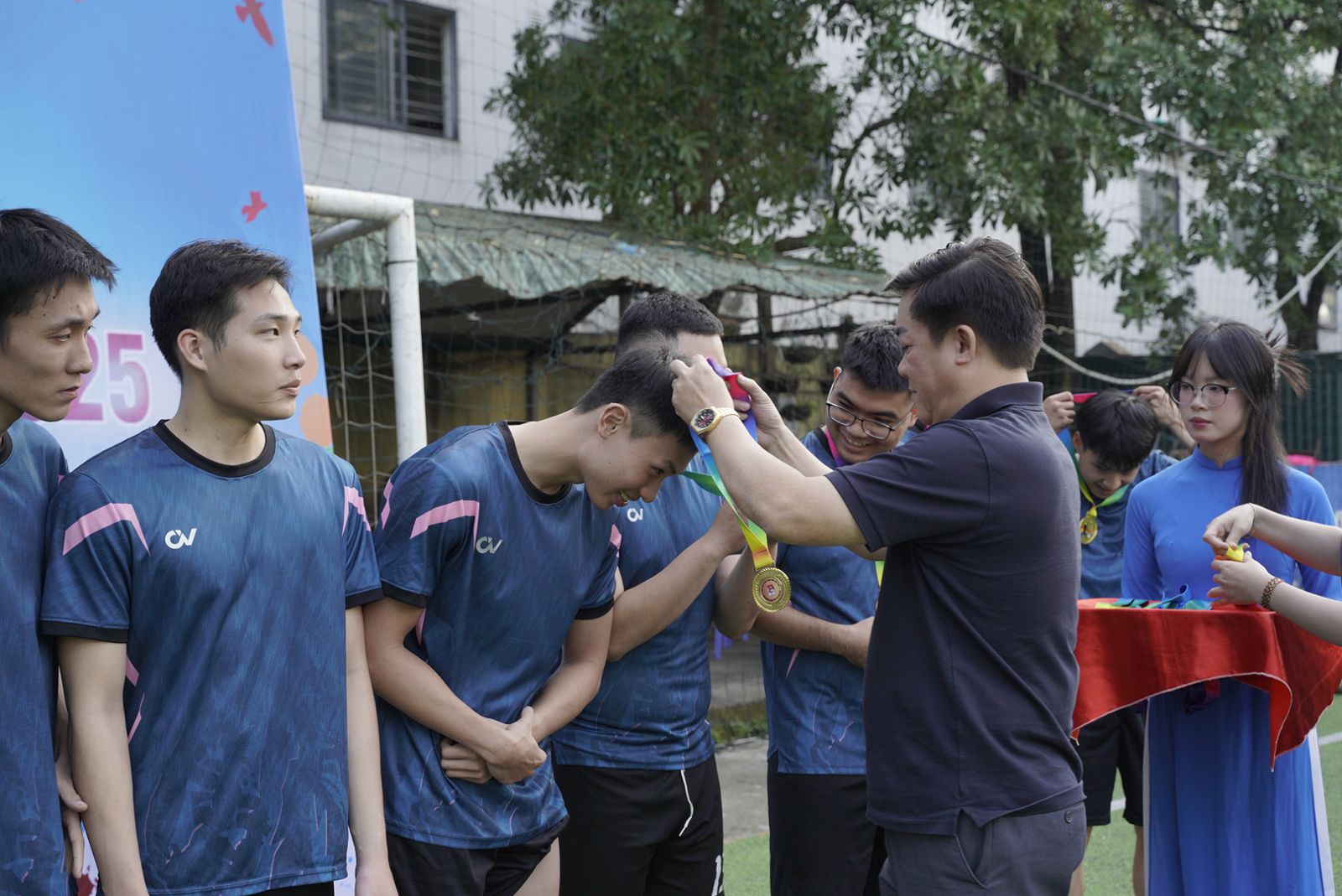 TS. Hoàng Minh Tuấn – Ủy viên Ban Thường vụ, Phó Giám đốc phụ trách Học viện trao Huy chương cho các cầu thủ đội bóng ngành Quan hệ công chúng