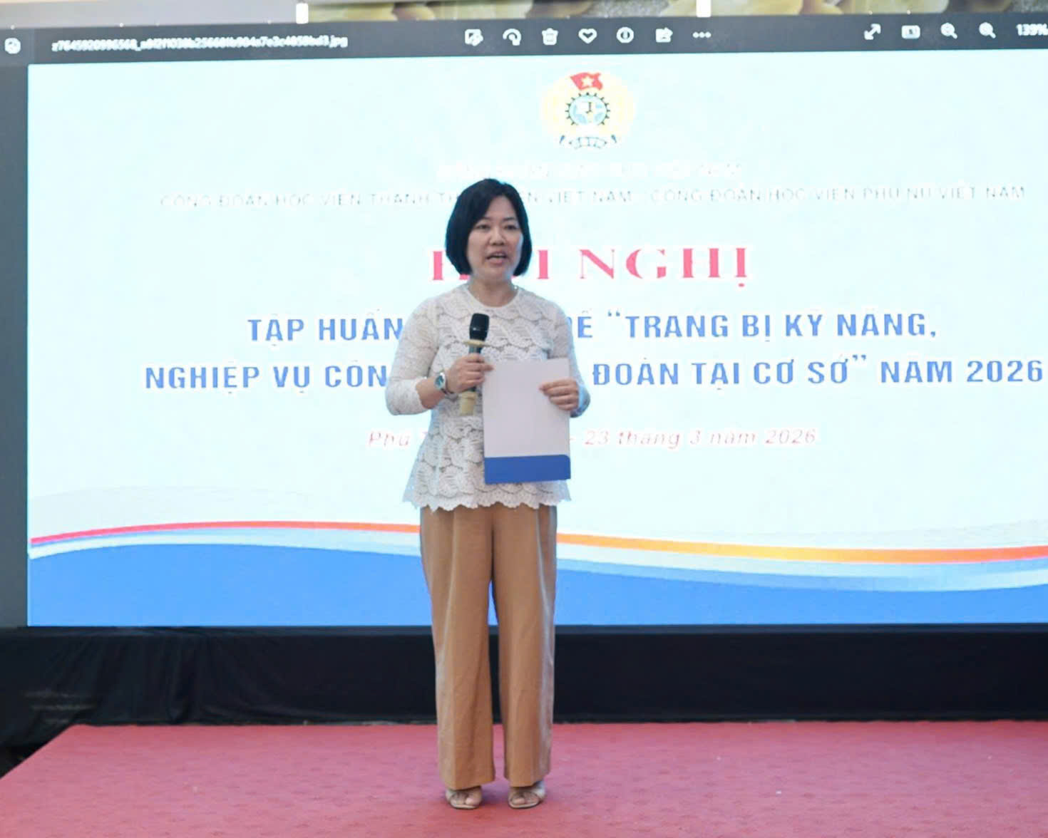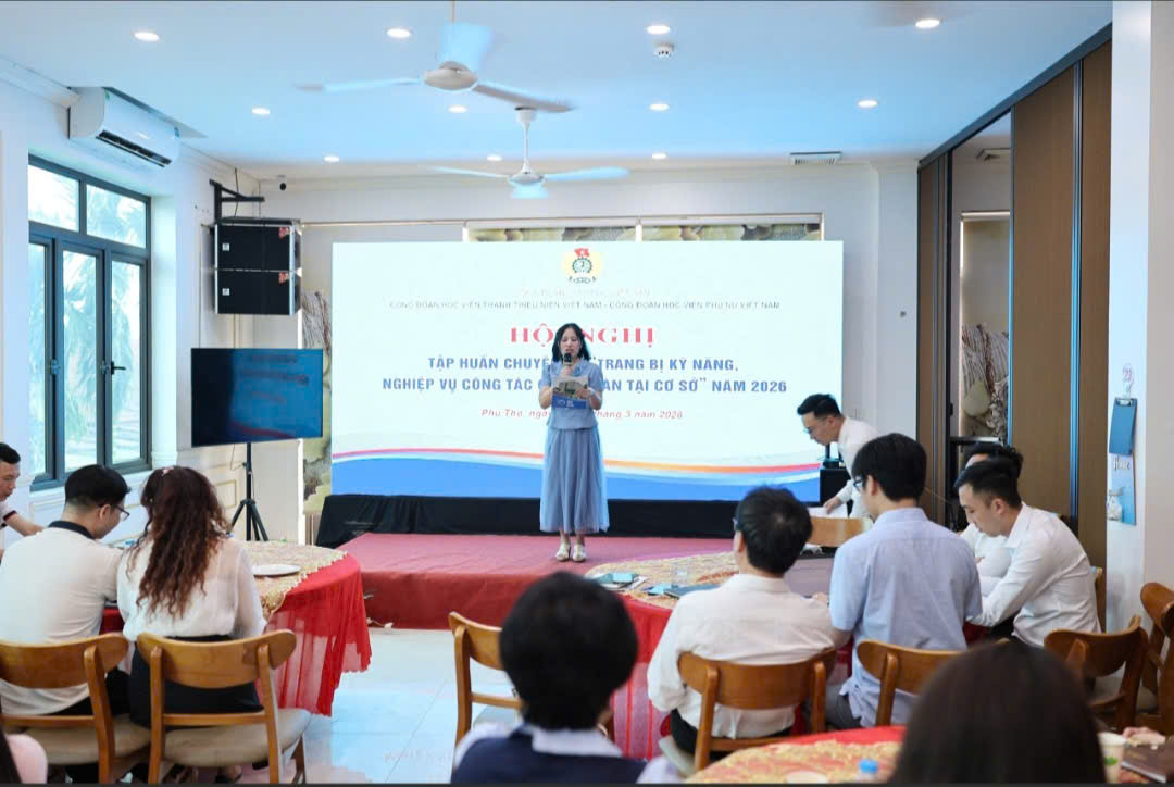 Trong 02 ngày 22, 23/3/2026, tại Phú Thọ, Công đoàn Học viện Thanh thiếu niên Việt Nam và Công đoàn Học viện Phụ nữ Việt Nam phối hợp tổ chức tập huấn chuyên đề “Trang bị kỹ năng, nghiệp công tác công đoàn tại cơ sở”, năm 2026.