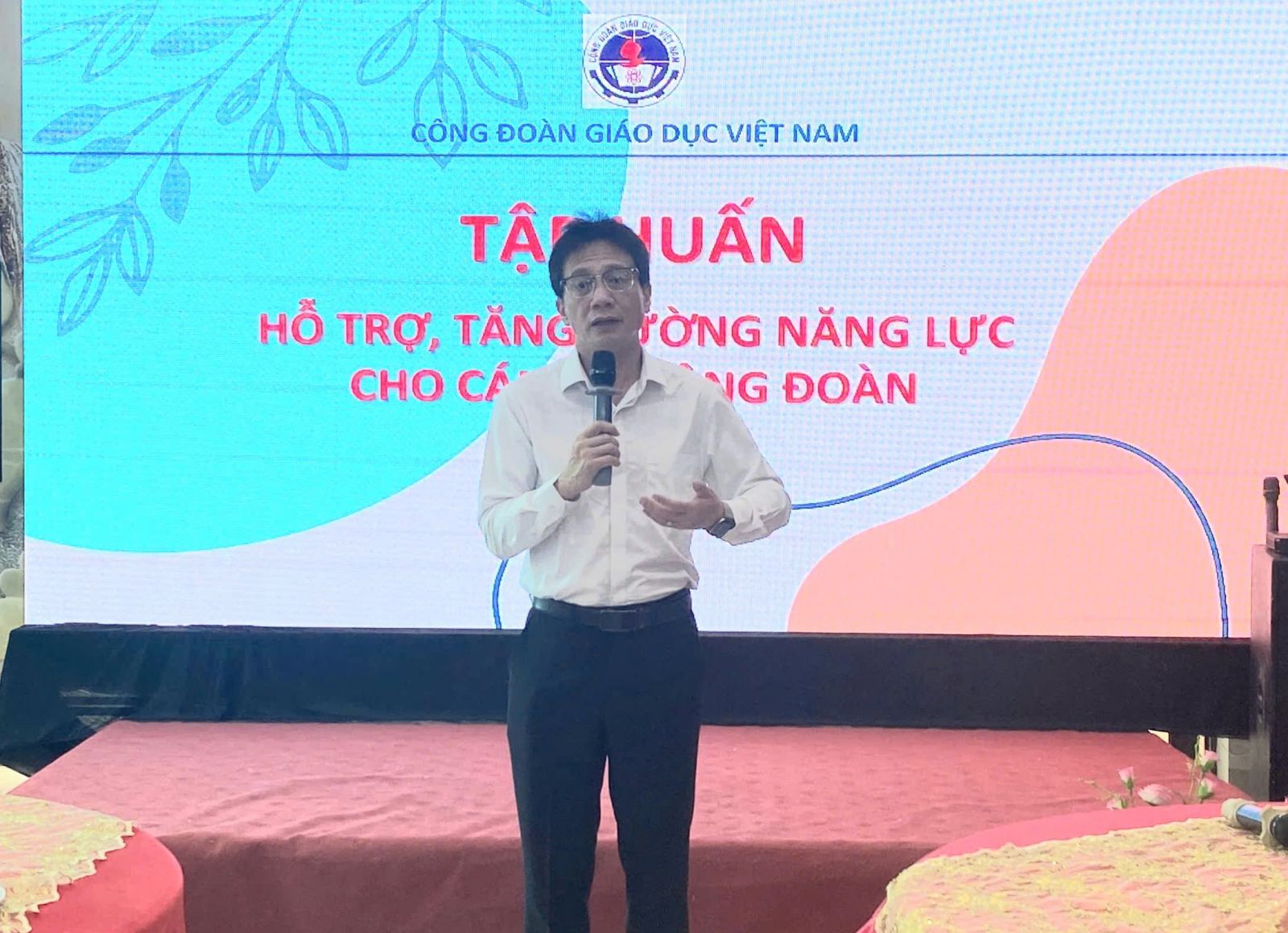 Đồng chí Nguyễn Ngọc Ân, Ủy viên BCH Đảng bộ, Bộ Giáo dục và Đào tạo, Ủy viên Đoàn Chủ tịch Tổng Liên đoàn Lao động Việt Nam, Chủ tịch Công đoàn Giáo dục Việt Nam đã trao đổi hai chuyên đề tại chương trình tập huấn