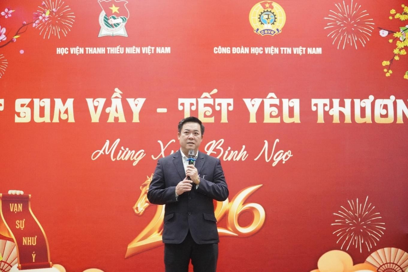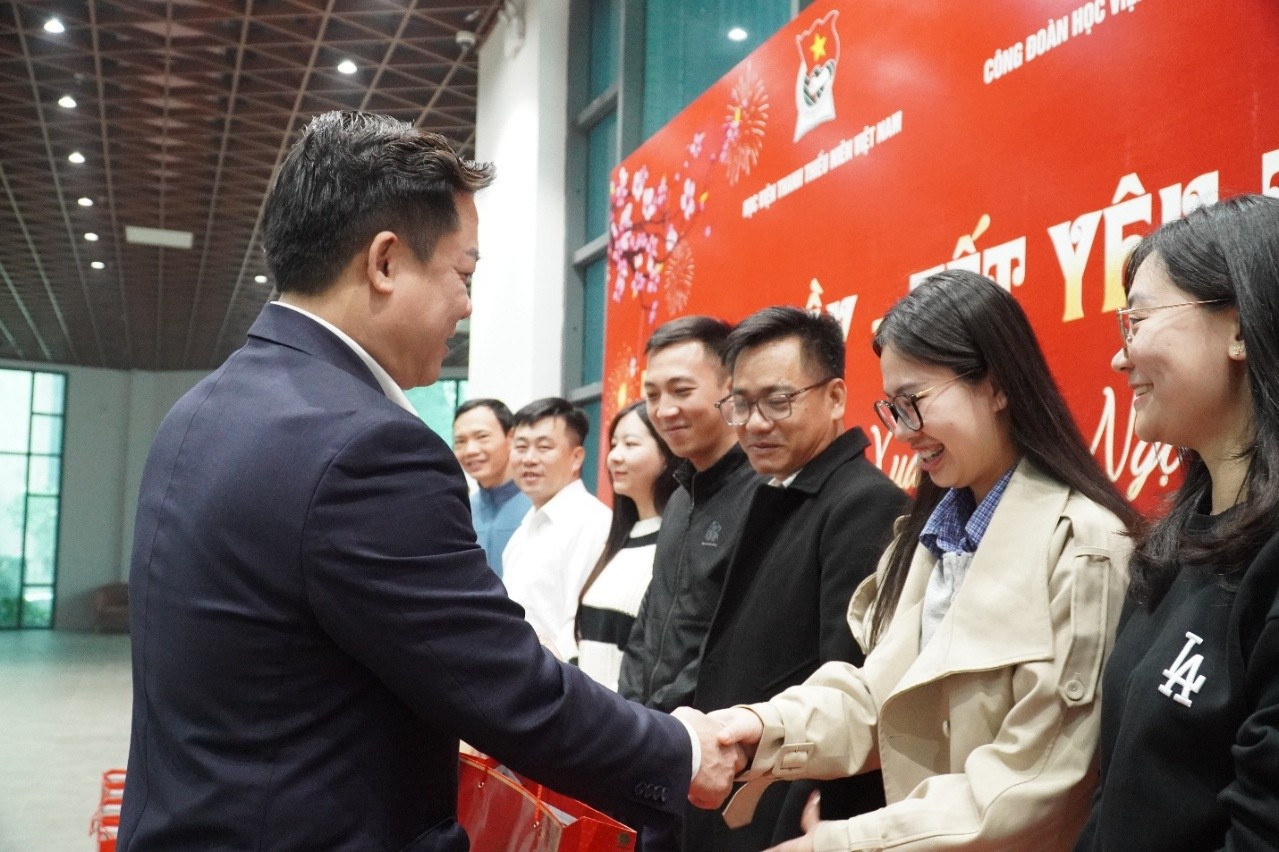 Tiếp đó, sáng ngày 06/2/2026, tại tòa nhà Hiệu bộ, lãnh đạo, BCH Công đoàn Học viện Thanh thiếu niên Việt Nam tổ chức chương trình “Tết sum vầy – Tết yêu thương” – trao quà Tết tặng toàn thể cán bộ, viên chức, người lao động Học viện.