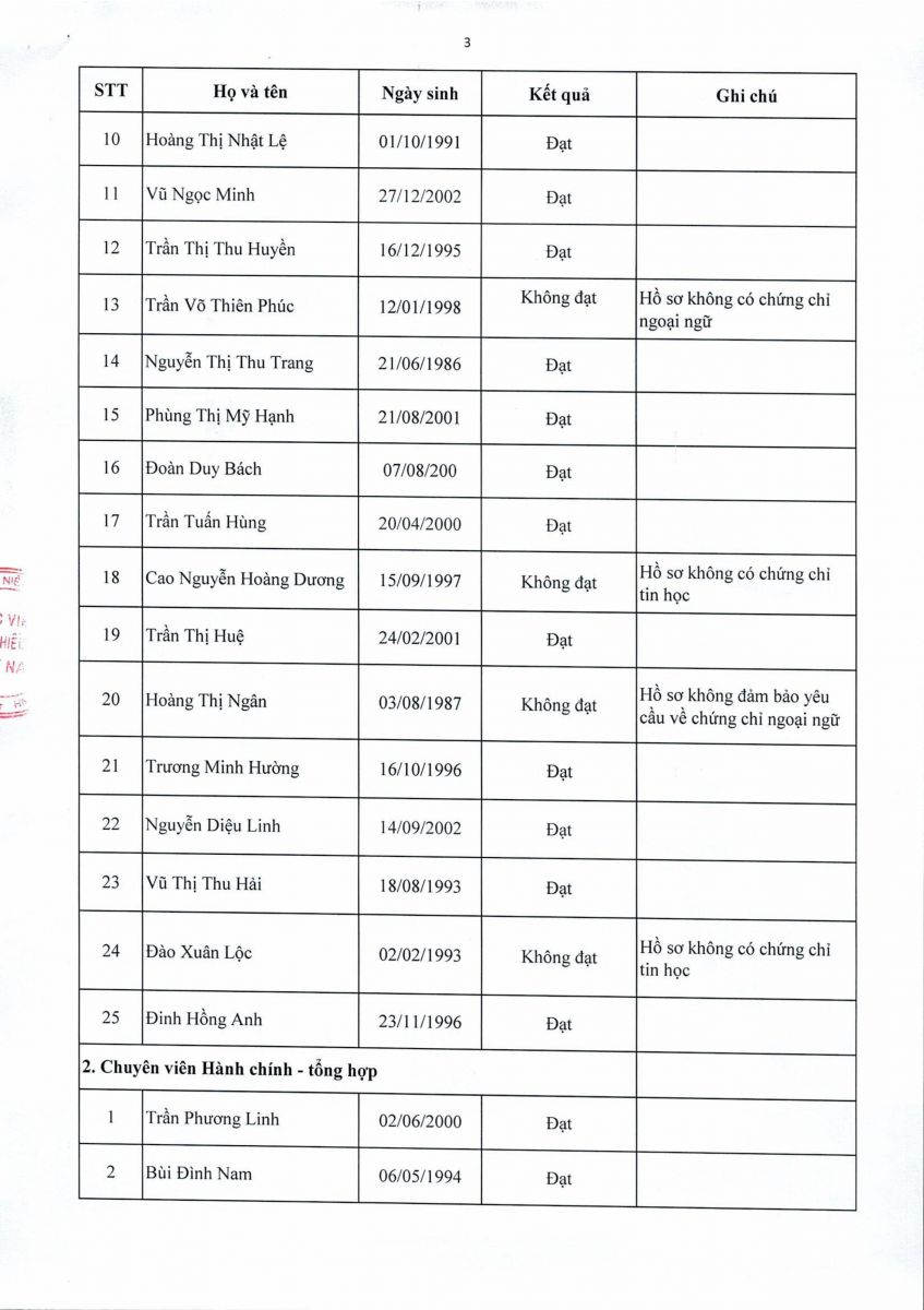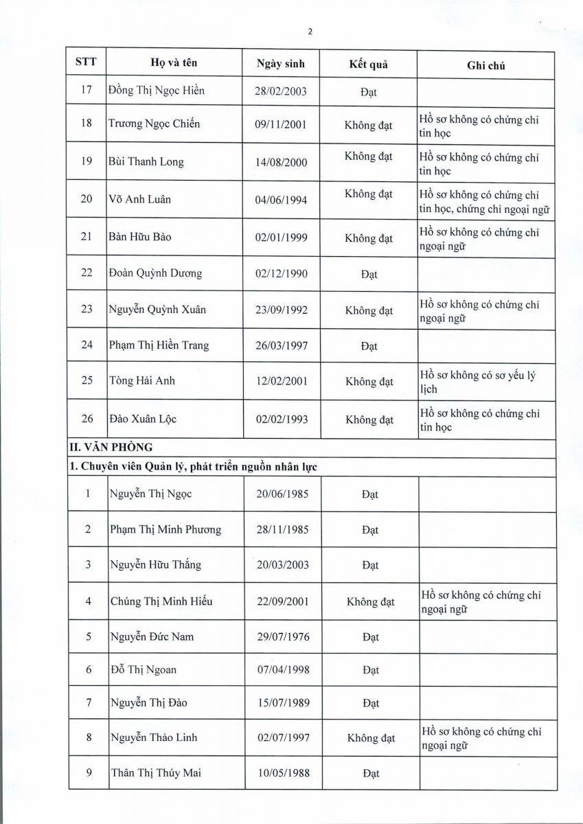 Thông báo kết quả thẩm định hồ sơ ứng viên tuyển dụng nhân sự đợt 2, năm 2025
