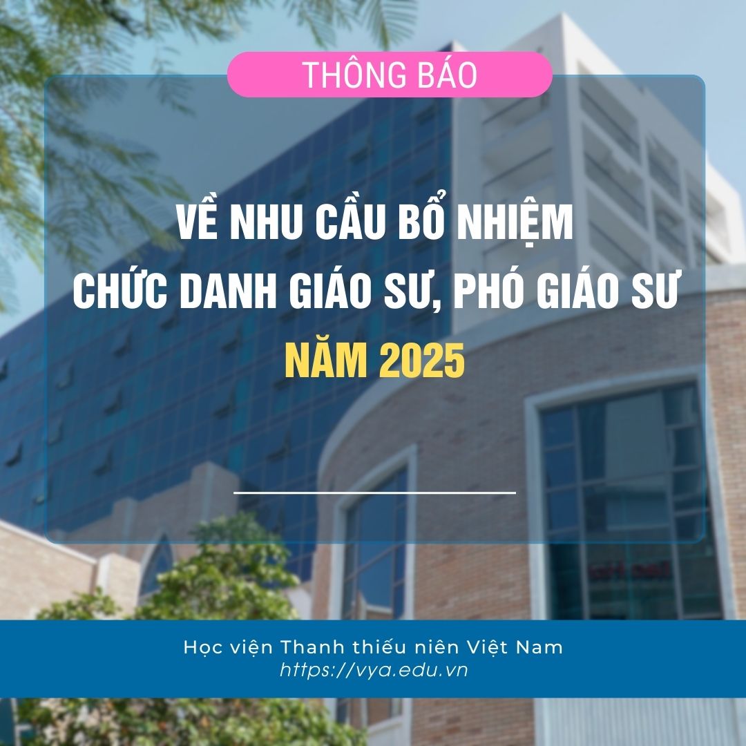 Học viện Thanh thiếu niên Việt Nam thông báo nhu cầu và điều kiện xét bổ nhiệm chức danh giáo sư (GS), phó giáo sư (PGS) năm 2025, như sau:
