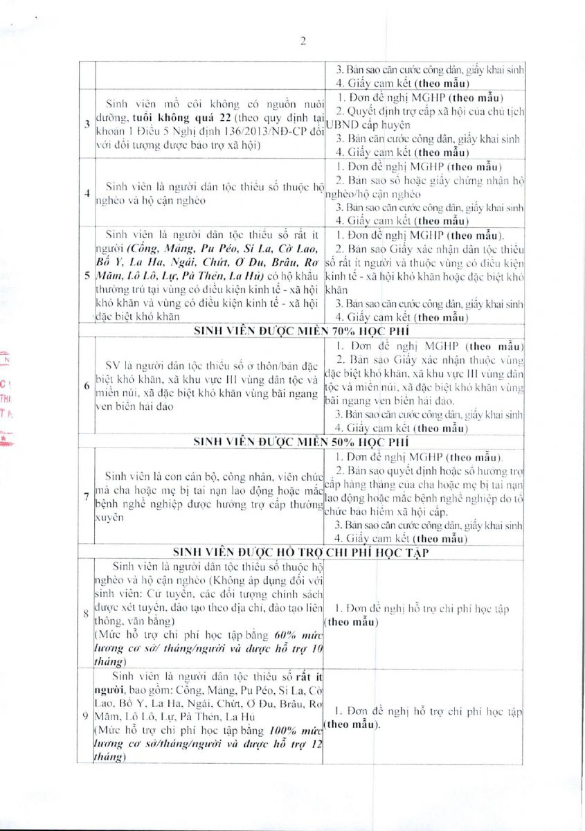 - Sinh viên đọc kỹ Đối tượng và hồ sơ xét miễn, giảm học phí và hỗ trợ chi phí học tập.