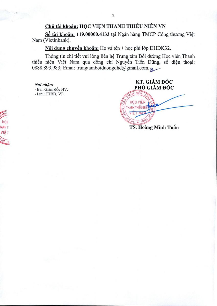 - Thông báo tổ chức lớp Bồi dưỡng kiến thức, nghiệp vụ, kỹ năng công tác Đoàn, Hội, Đội, khóa 32, năm 2025