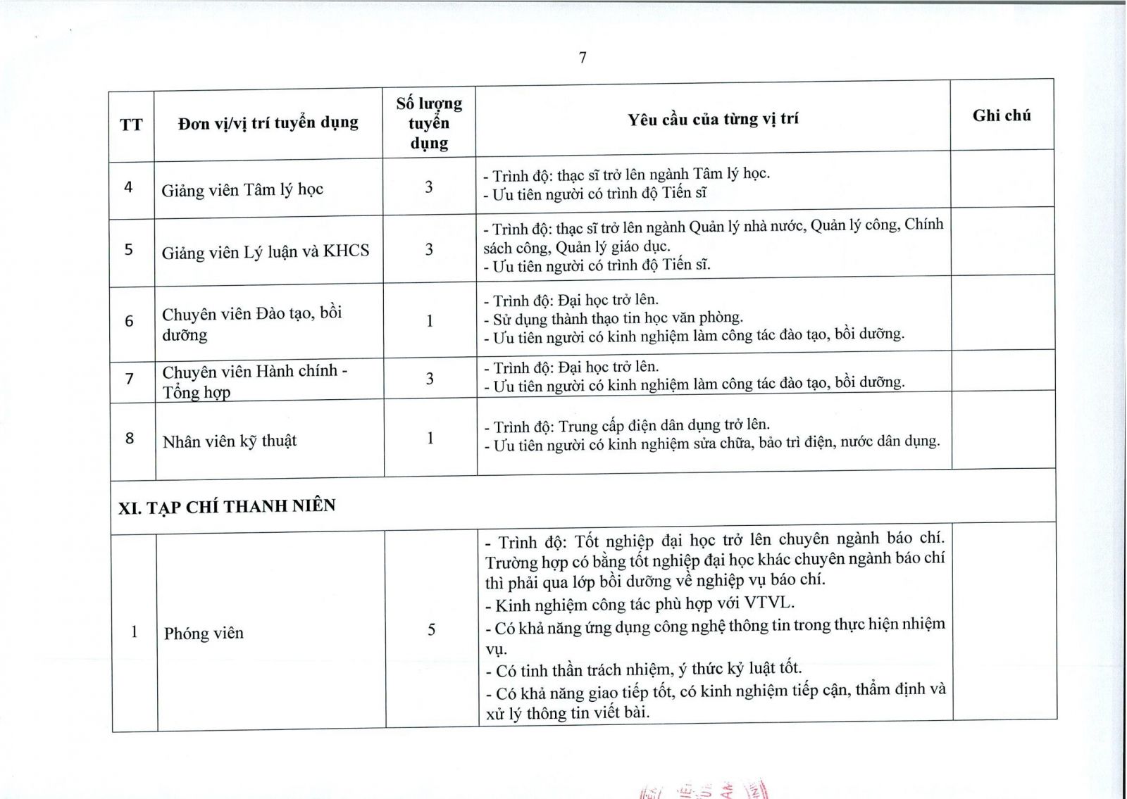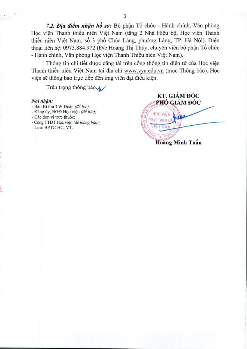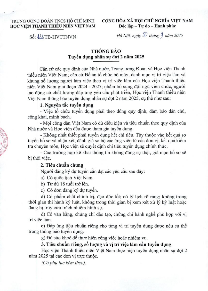 - Học viện Thanh thiếu niên Việt Nam thông báo tuyển dụng giảng viên hợp đồng