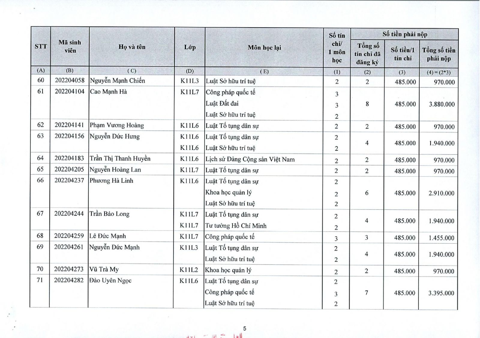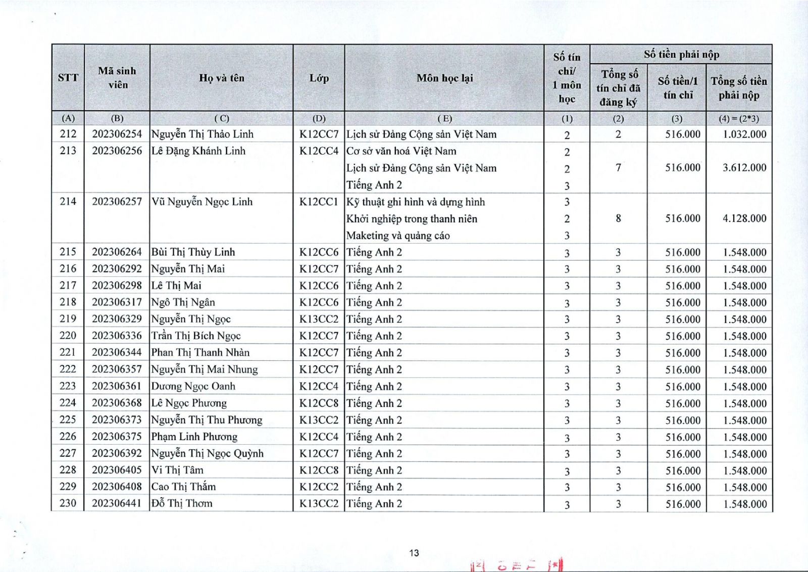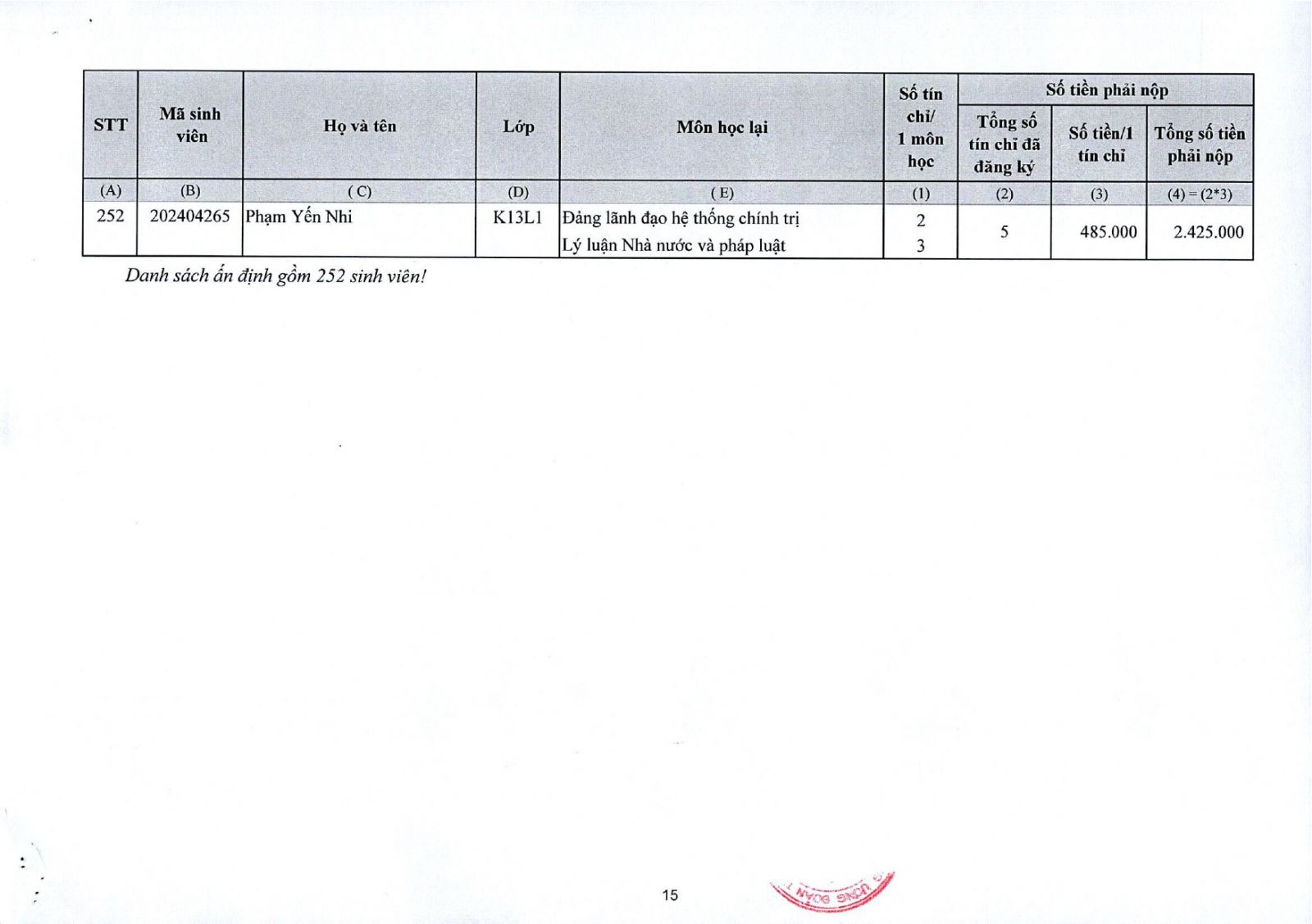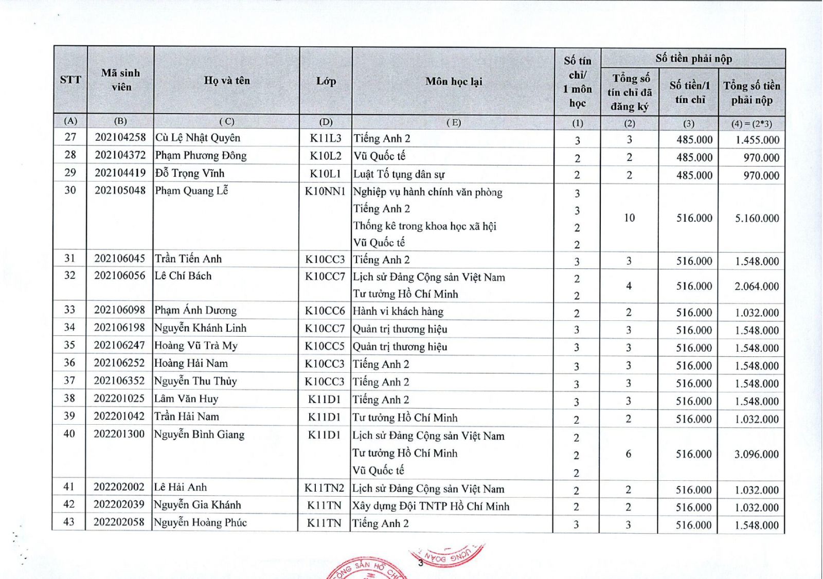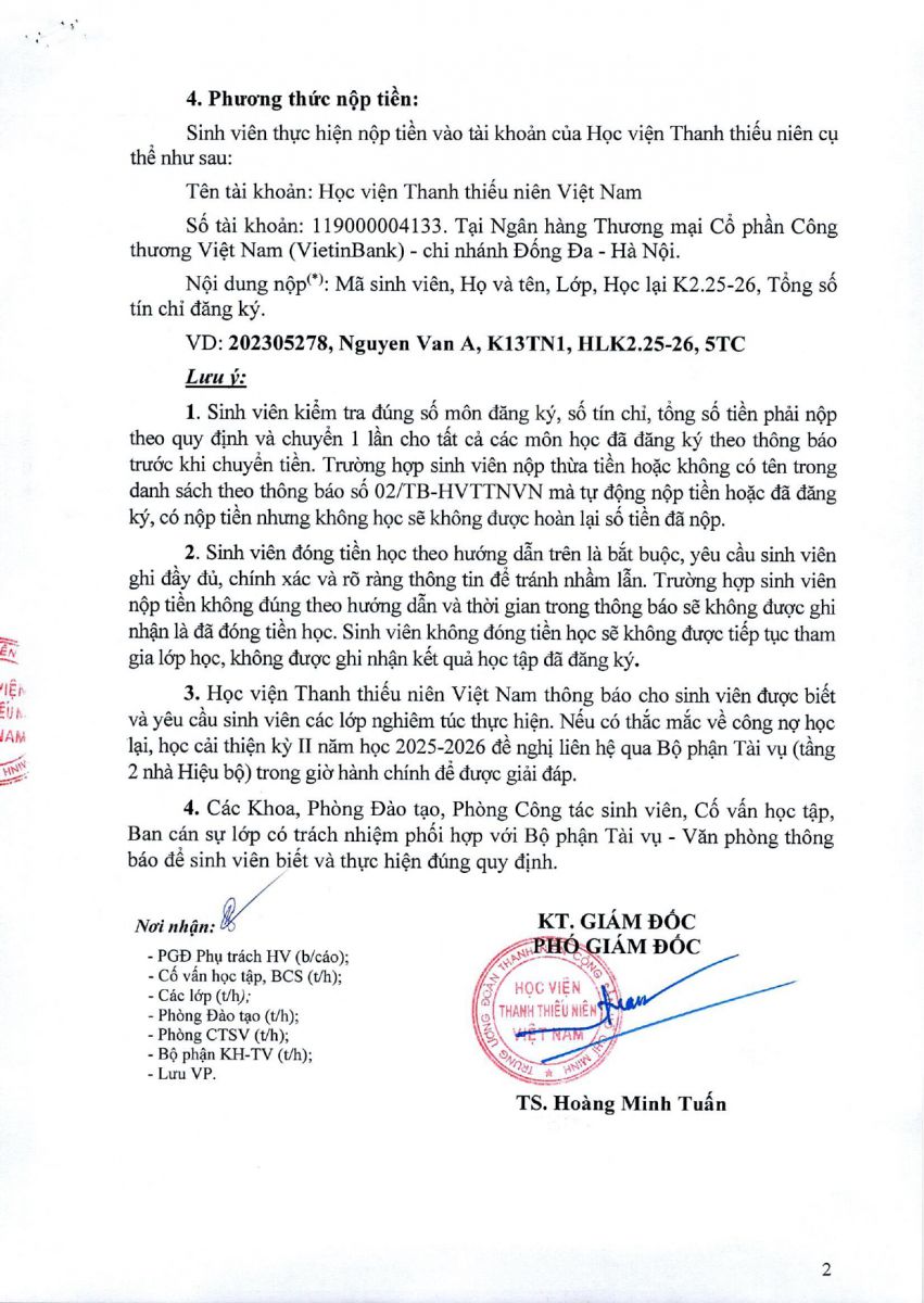 - Sinh viên thực hiện nộp tiền vào tài khoản của Học viện Thanh thiếu niên Việt nam như trên Thông báo.