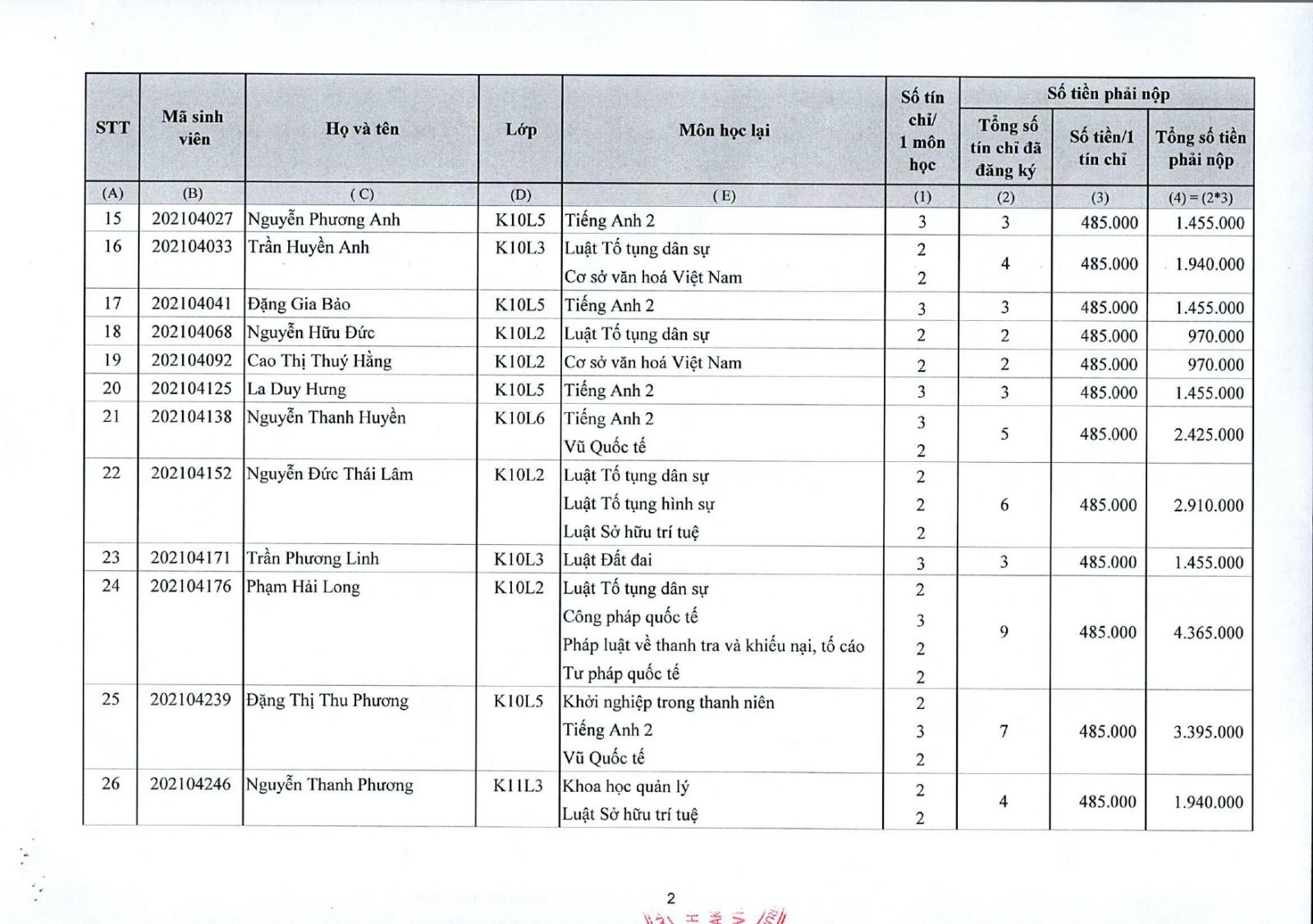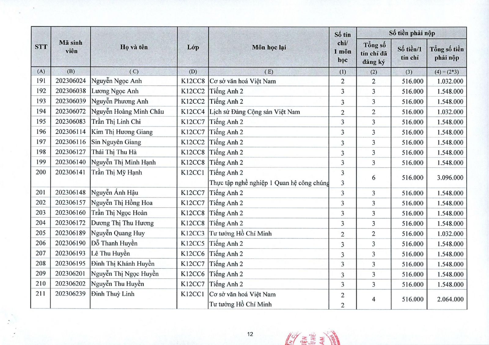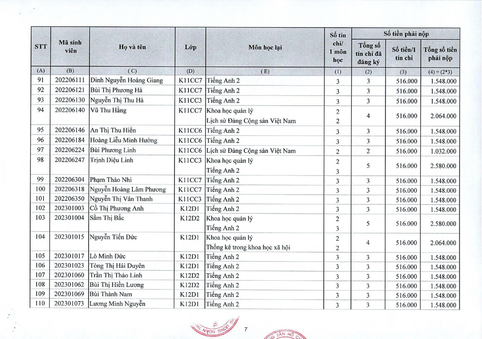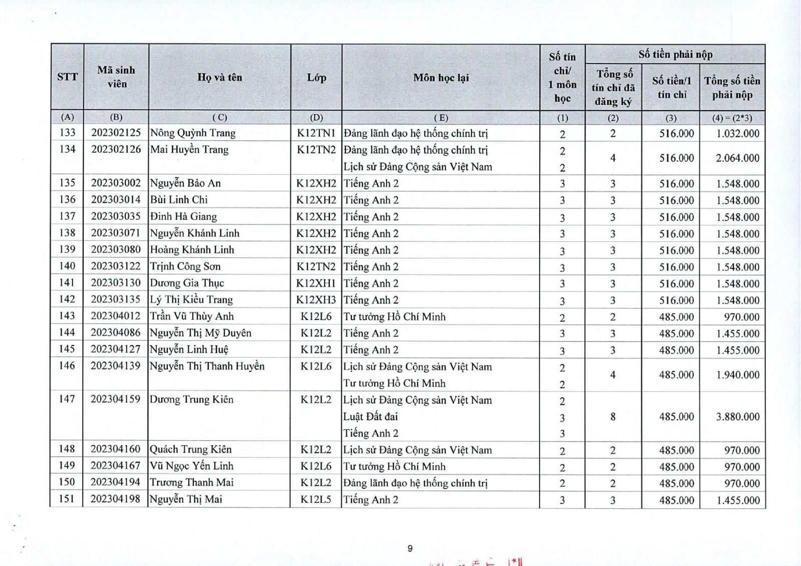 Thông báo về việc thu tiền học lại, học cải thiện kỳ II năm học 2025 - 2026 đối với sinh viên đại học chính quy (đợt 1)