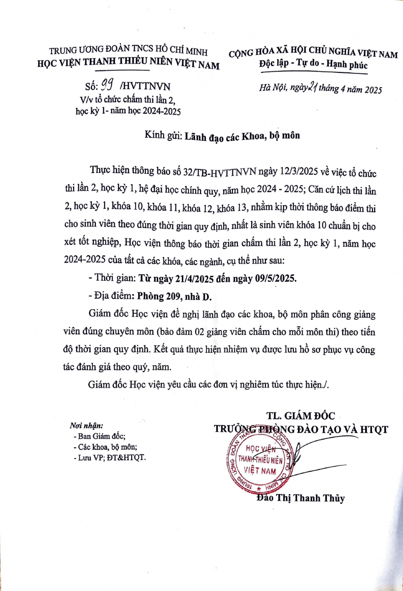- Thông báo tổ chức thi HKII năm học 2024-2025