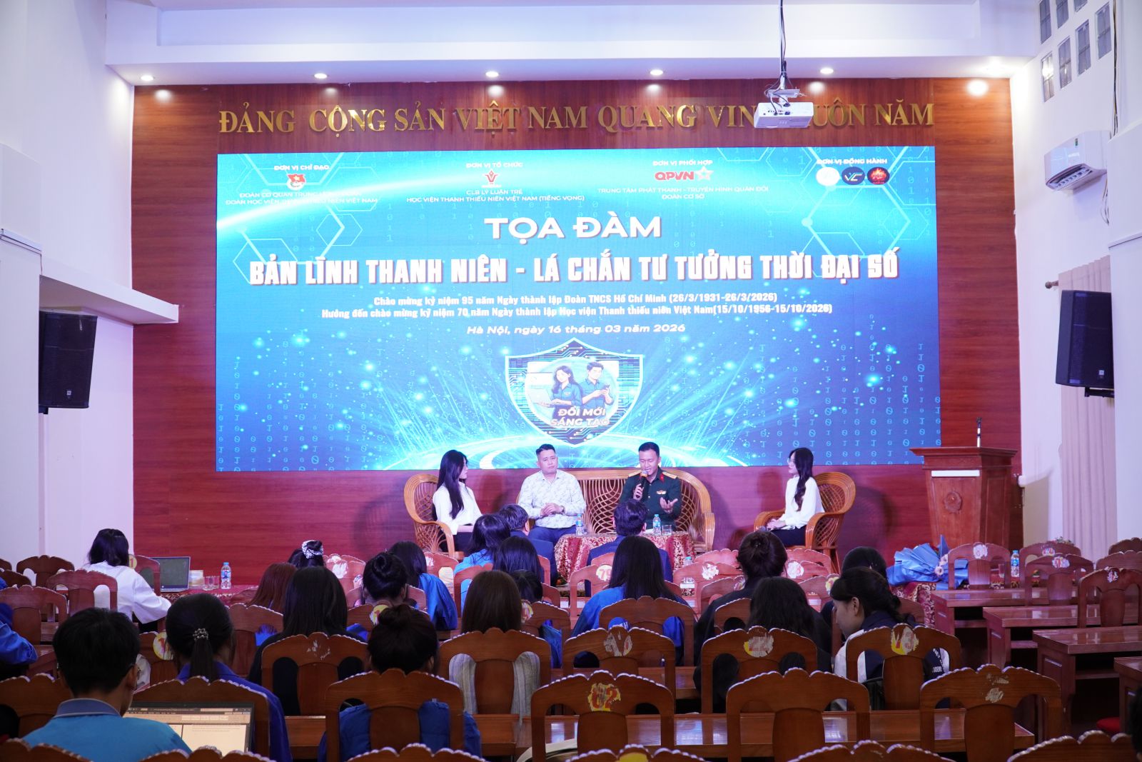 Thiết thực chào mừng kỷ niệm 95 năm Ngày thành lập Đoàn Thanh niên Cộng sản Hồ Chí Minh (26/3/1931 - 26/3/2026) và hướng tới kỷ niệm 70 năm Ngày thành lập Học viện Thanh thiếu niên Việt Nam (15/10/1956 - 15/10/2026), ngày 16/3/2026, tại Hội trường 2, Nhà C, Học viện Thanh thiếu niên Việt Nam, Đoàn Học viện Thanh thiếu niên Việt Nam đã chỉ đạo tổ chức Tọa đàm “Bản lĩnh thanh niên - Lá chắn tư tưởng thời đại số”.