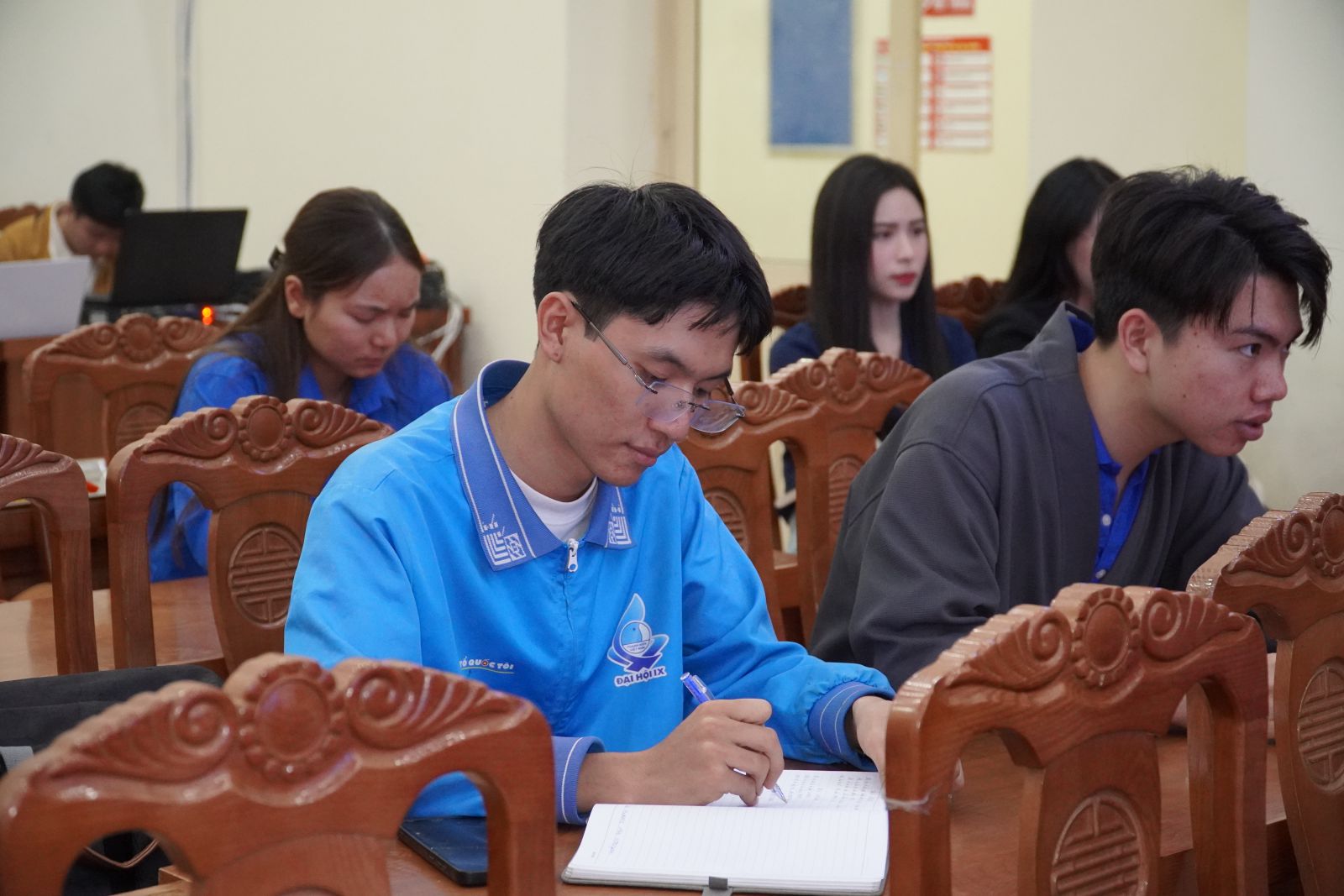 Các bạn đoàn viên, sinh viên Học viện chăm chú lắng nghe, ghi chép những chia sẻ, trao đổi của các diễn giả