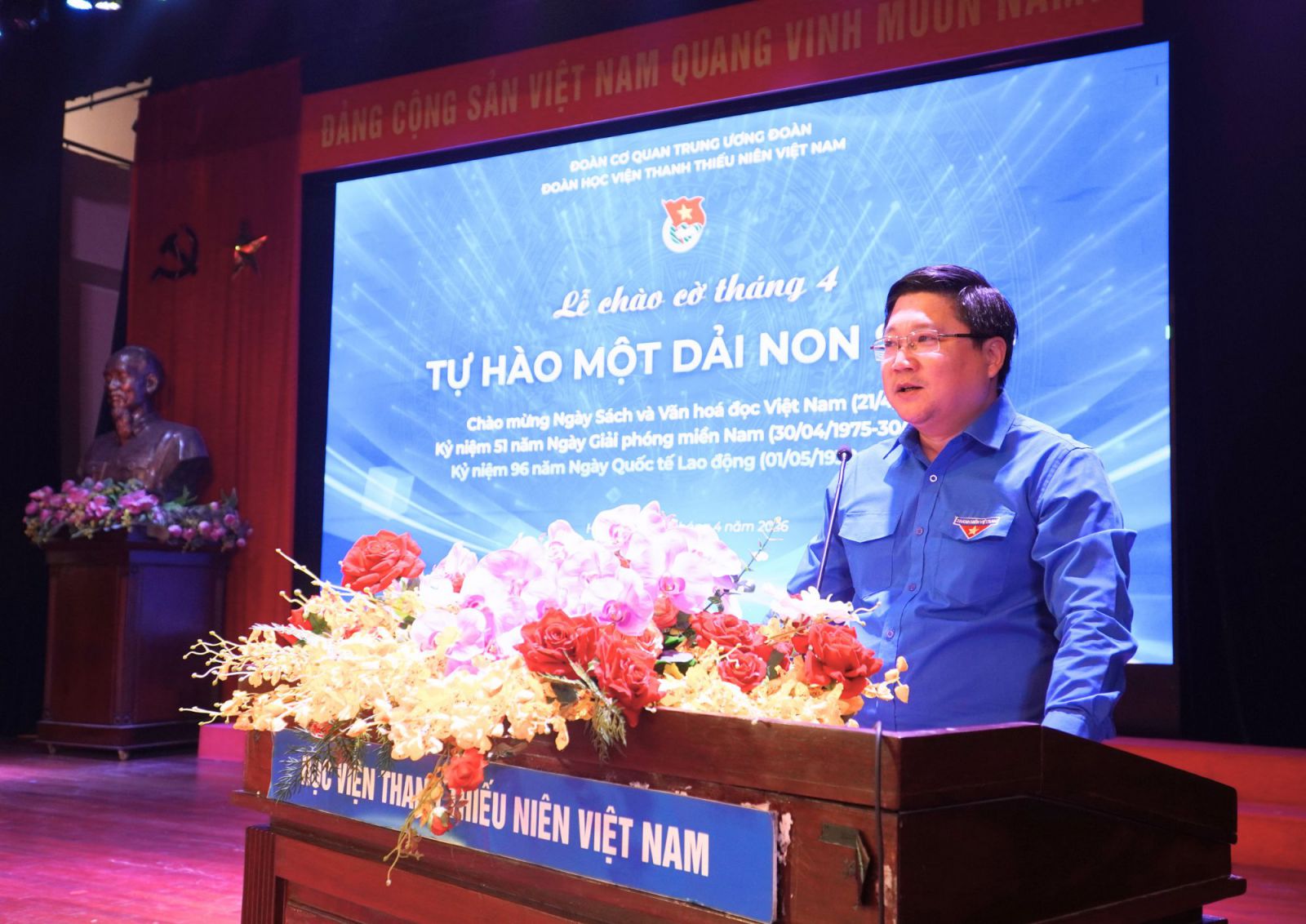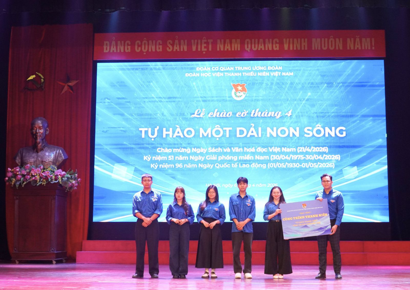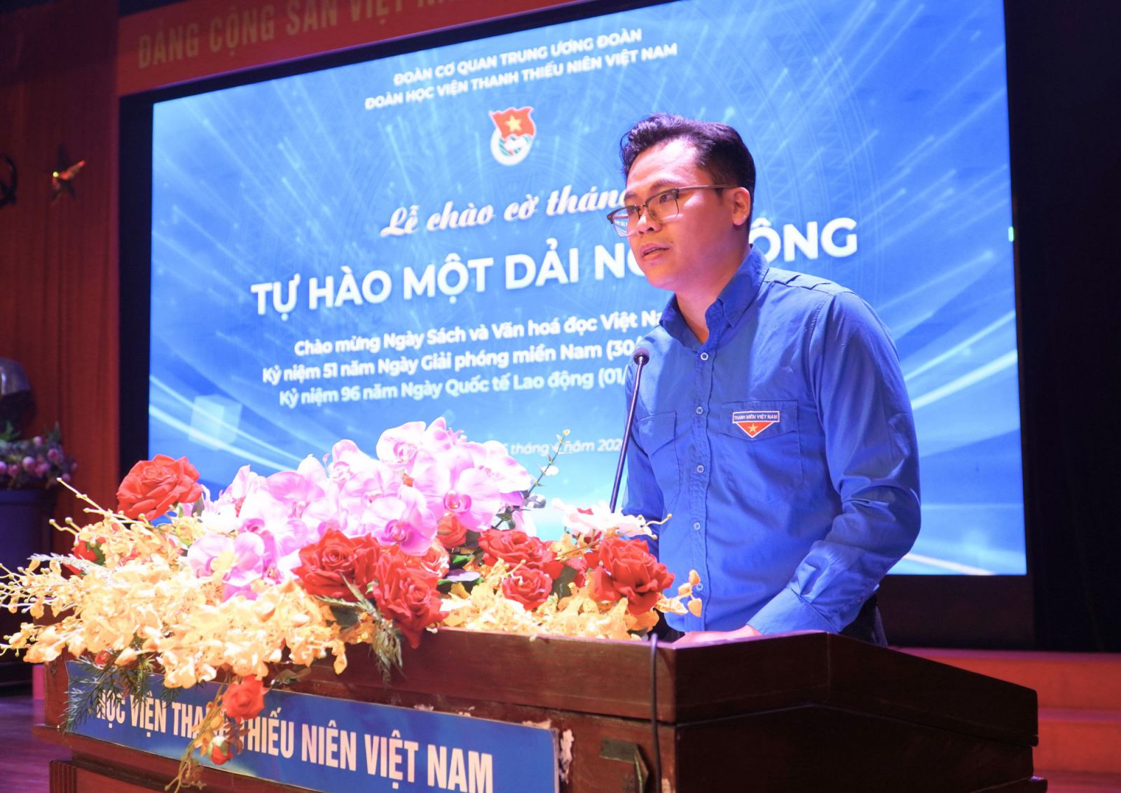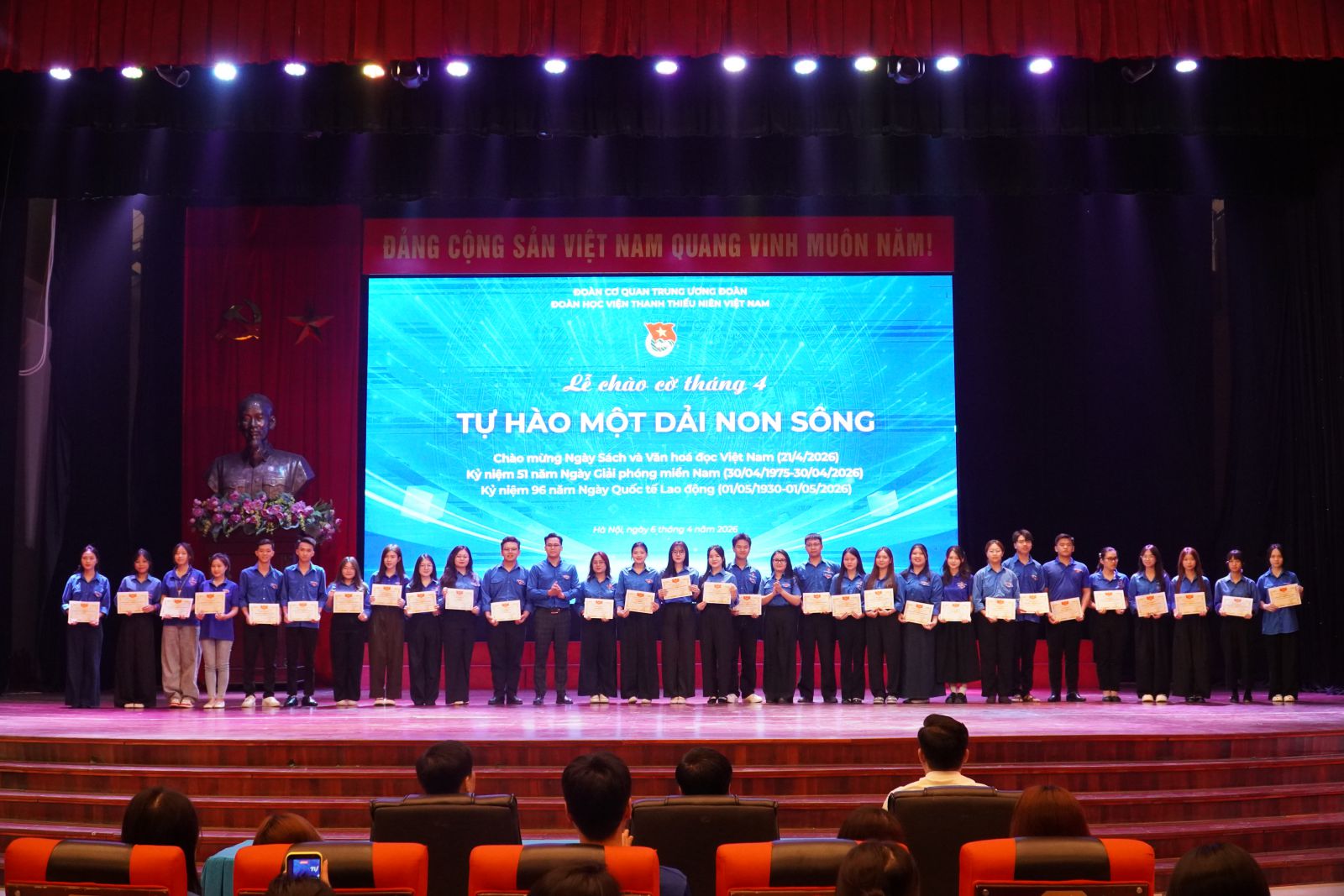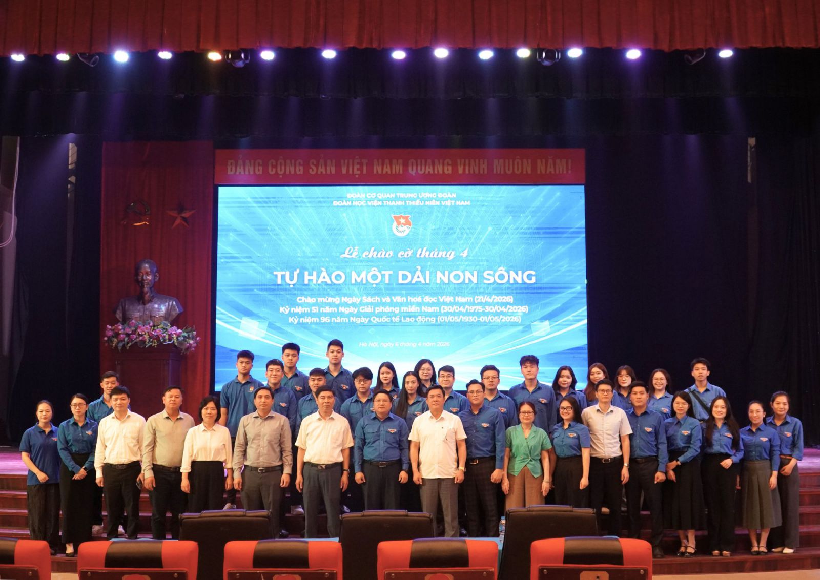 Thực hiện Chương trình công tác Đoàn và phong trào thanh niên năm 2026; nhằm tuyên truyền, giáo dục truyền thống cách mạng, bồi đắp niềm tự hào dân tộc, nâng cao nhận thức chính trị cho cán bộ, đoàn viên, thanh niên; đồng thời thiết thực chào mừng Ngày Sách và Văn hoá đọc Việt Nam (21/4/2026), kỷ niệm 51 năm Ngày Giải phóng miền Nam, thống nhất đất nước (30/4/1975 – 30/4/2026), kỷ niệm 96 năm Ngày Quốc tế Lao động (01/5/1930 – 01/5/2026), sáng ngày 06/4/2026, tại Hội trường lớn, Học viện Thanh thiếu niên Việt Nam, Đoàn Thanh niên Học viện đã long trọng tổ chức Lễ chào cờ truyền thống tháng 4/2026 với chủ đề “Tự hào một dải non sông”.