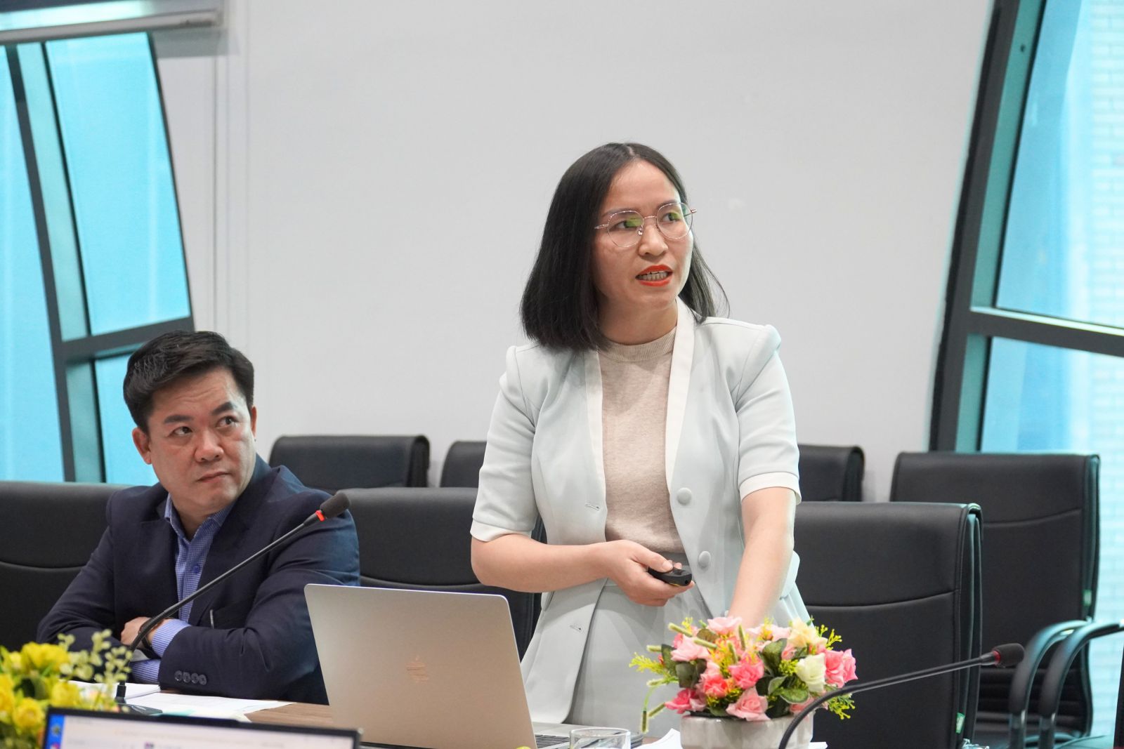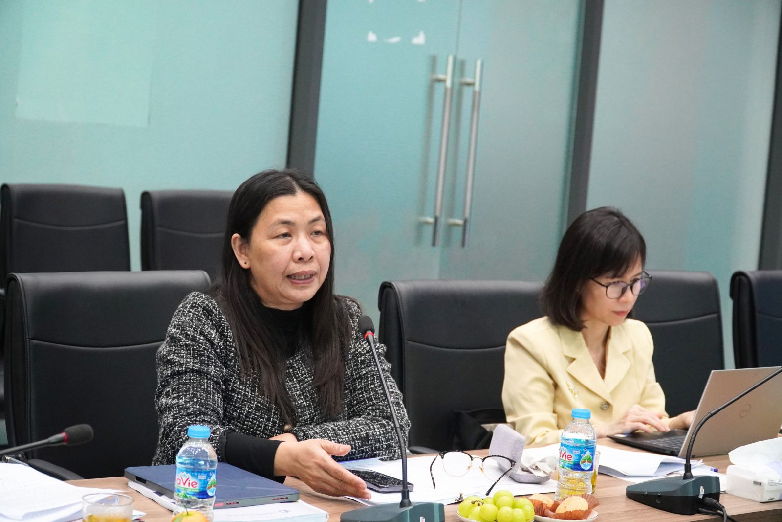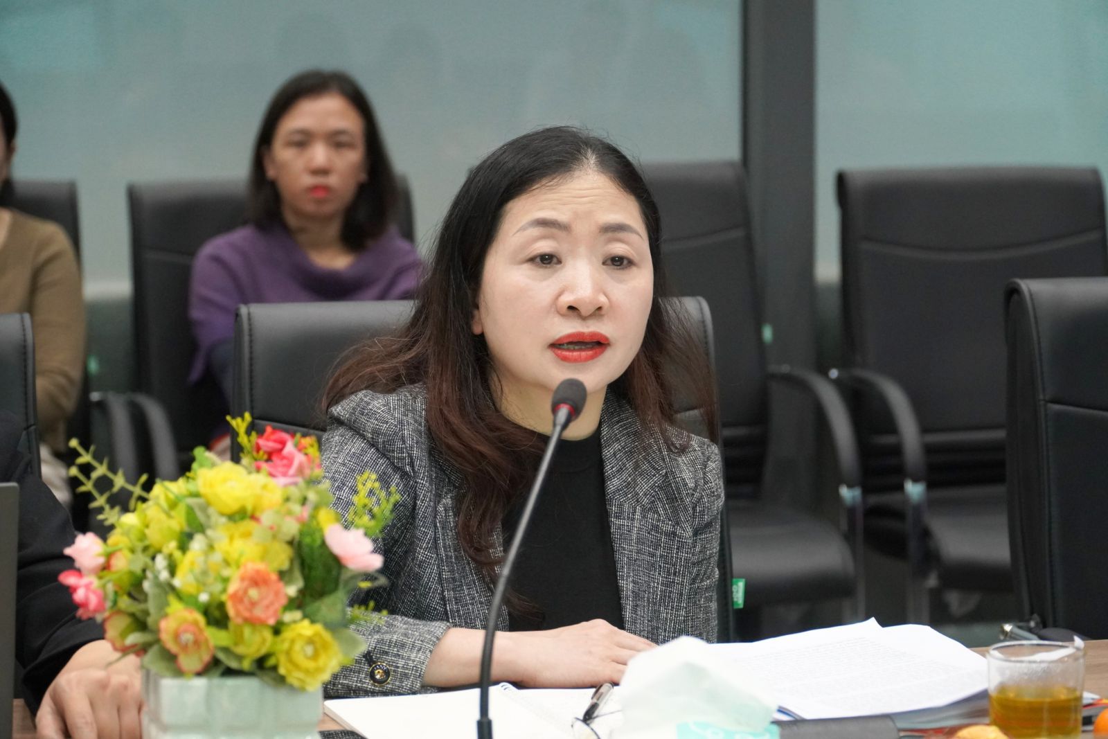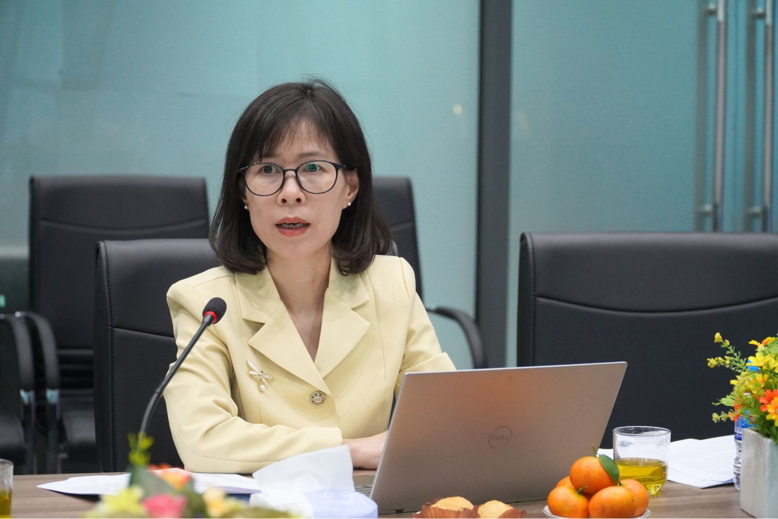 TS. Nguyễn Thị Thu Thuỷ - Vụ Giáo dục Đại học, Bộ Giáo dục và Đào tạo, Trưởng đoàn khảo sát phát biểu tại buổi khảo sát