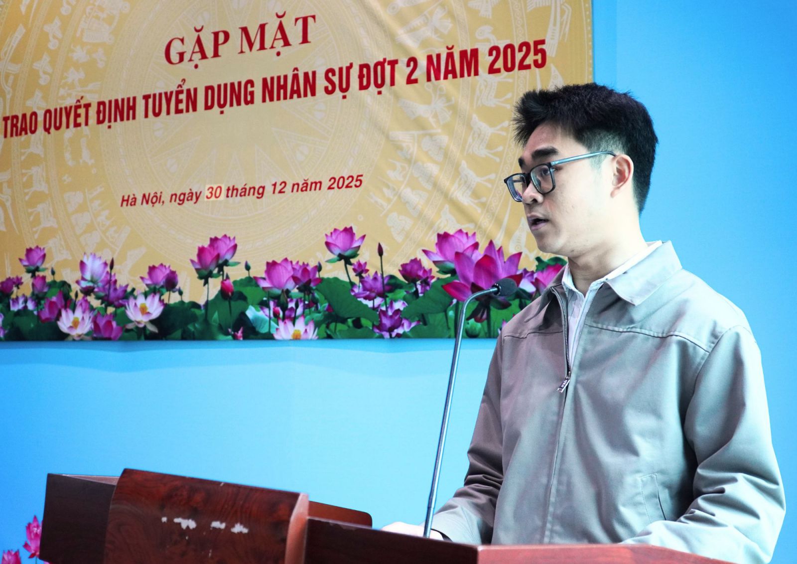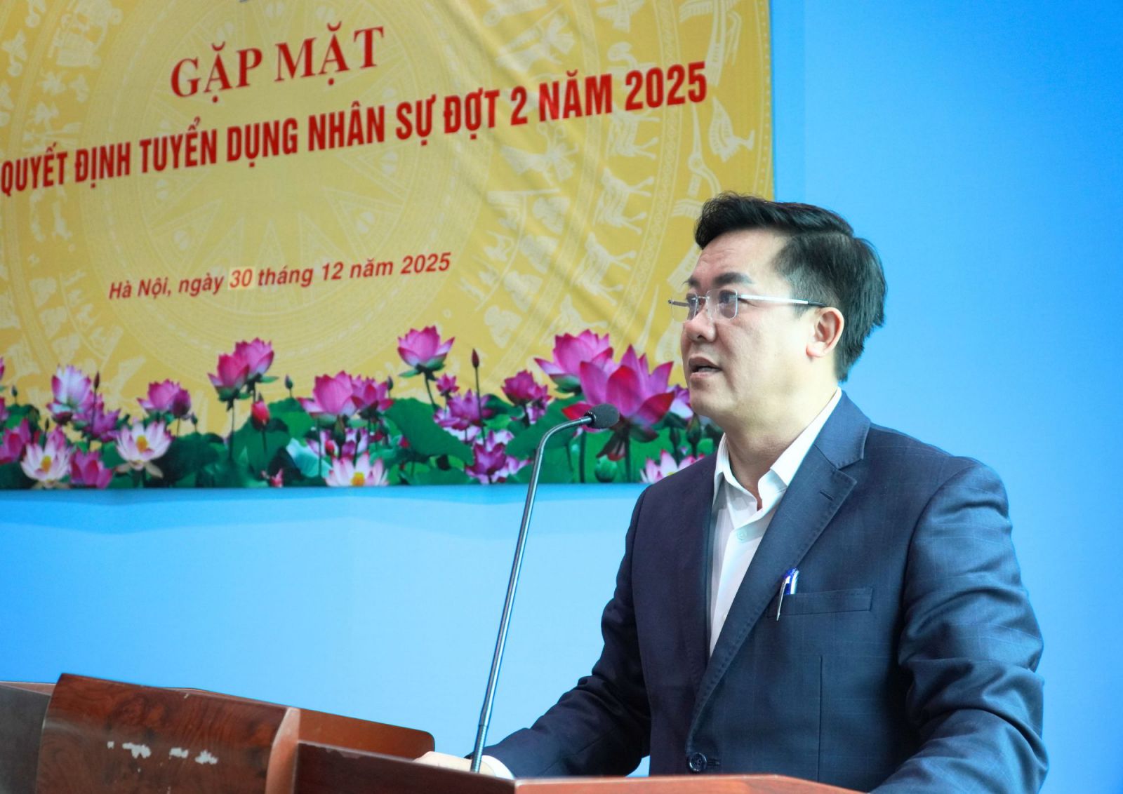 Tại chương trình, TS. Hoàng Minh Tuấn chúc mừng các ứng viên đã trúng tuyển vào làm việc tại Học viện, đồng thời giao nhiệm vụ cho các ứng viên mới chủ động tiếp cận công việc, nhanh chóng thích nghi để hoàn thành tốt các nhiệm vụ được giao trong năm 2026.
